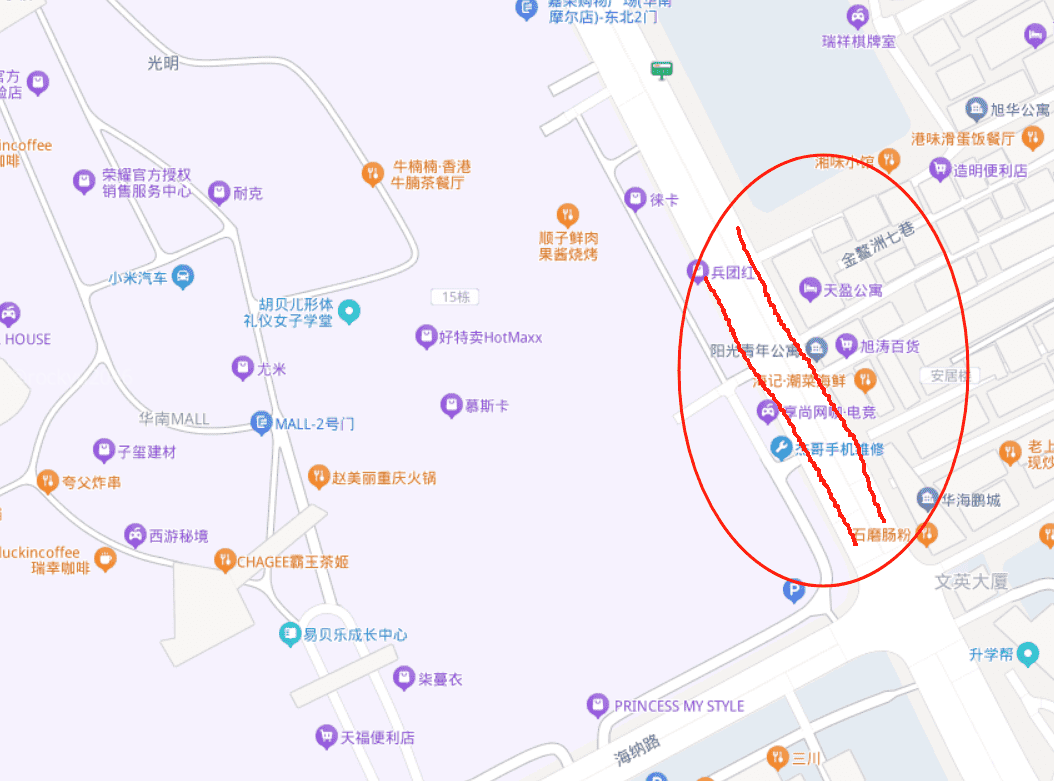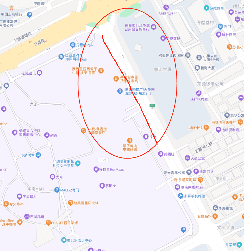 万江区华南Mall 西侧,马路两旁乱停私家车,此道路已经有明确的道路划分规划!来此商圈的车辆还是乱停乱放! 明明华南mall 提供了巨量的停车位,可是此路段还是被乱停放私家车,尤其属于周屋基村一侧的路边饭店门口,乱停放机动车辆更为严重,已经把划分好的自行车人行路全部横截堵死! 嘉荣超市门口附近也是一个样子,总是有私家车乱停,明明停车场有巨量的车位! 另外要投诉东莞万江的铁骑,就知道去华南mall 附近的几个小区旁边抄牌,就不知道去管管我说的地方乱停车吗?我太多次看见你们路过这里,对乱停车视而不见!!!! 因为这里有商圈就可以乱停车吗? 每每周末和节假日的时候我说的这个区域堵成什么样子万江交警心理没点数吗? 这条路明明禁停!你们就是视而不见!我住在这里15年了,这里从来就没搞好过! 这么繁忙的路段,还敢乱停车,铁骑为什么不叫拖车把那些车拖走!!! 都不知道你们一天天的在干啥,还有,最近葡萄庄园1期北面,与金联路交界的位置,总有个开着卡车卖苹果的,问题是卡车停在斑马线上!!!! 我们行人和电单车 被迫离开斑马线,才能过马路!!