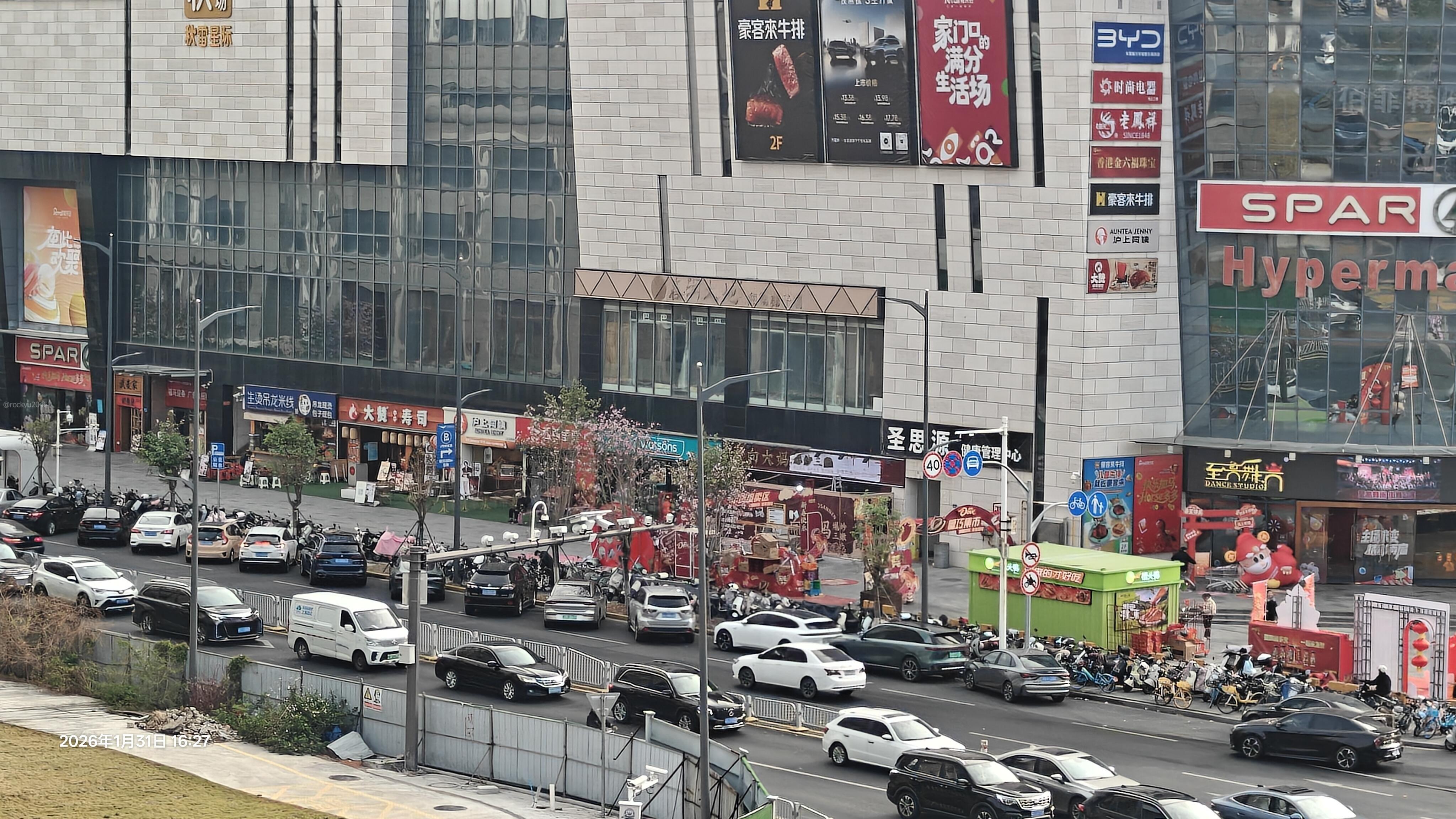 万江华南mall西侧路段乱停乱放私家车