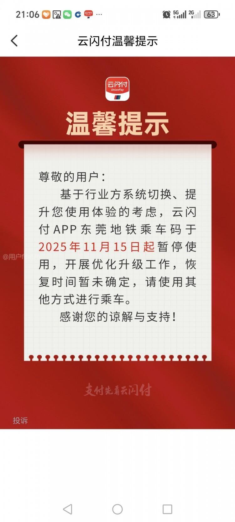 云闪付APP上东莞地铁码升级2个多月了,乍还不能用?