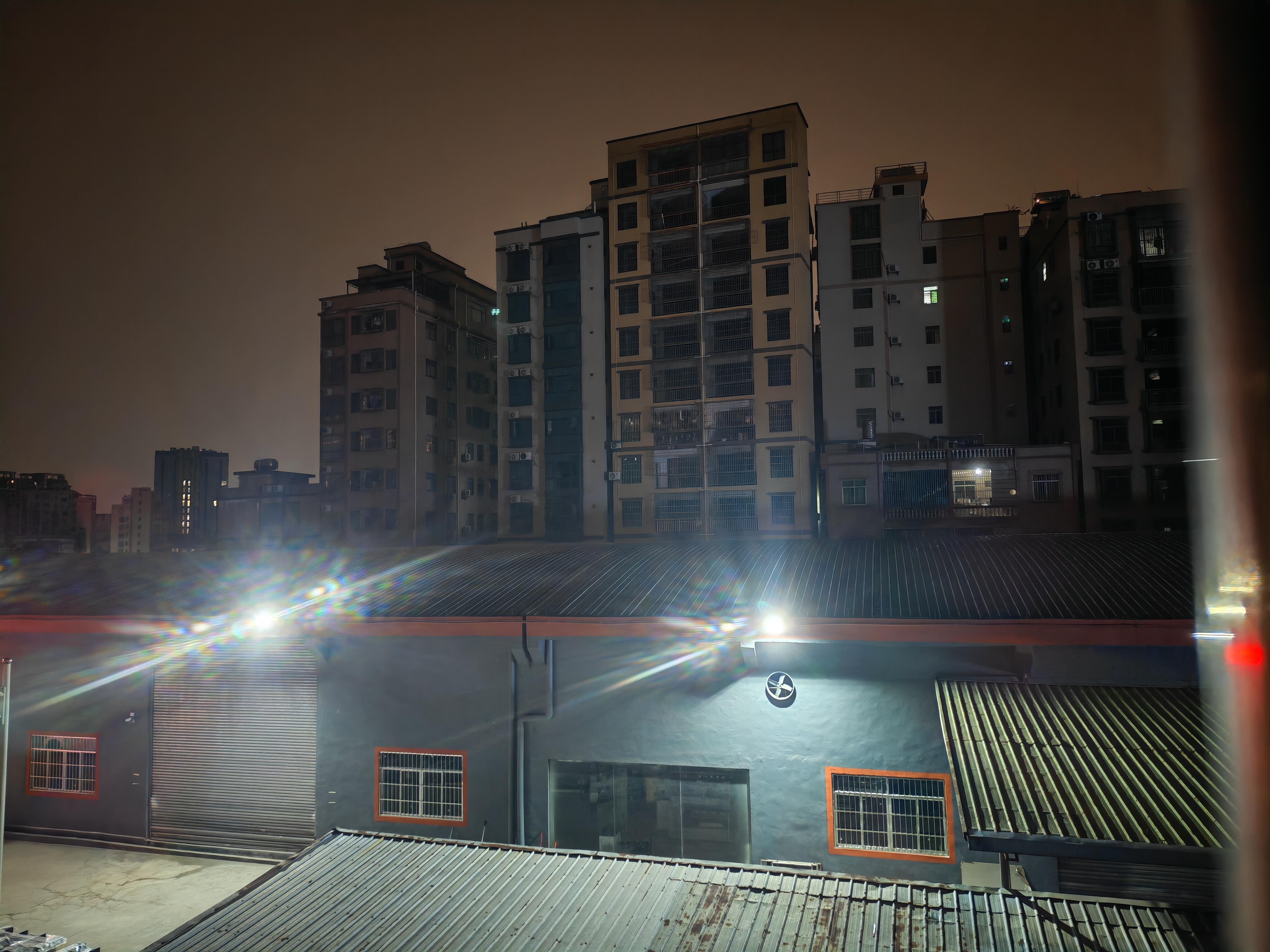 大岭山马蹄岗社区最近搬入的米格自动化有限公司院区厂房墙壁上加装几个高亮照明灯光照强度极大,直射对面住宅区,住户拉上窗帘都无法遮挡,对对面住户的生活造成了严重影响,请相关部门介入管理下,谢谢!