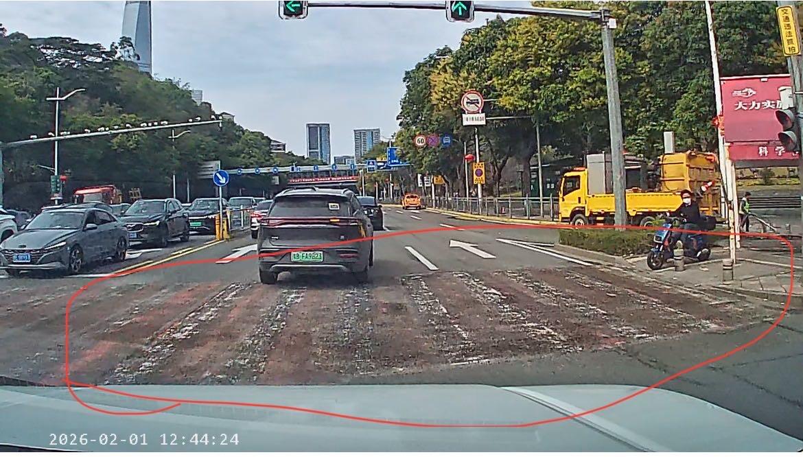 2026年2月1日 12时44分21秒在旗峰路与翠峰路口往旗峰公园方向,通过路口斑马线施工处施工单位未将施工处遗撒物清理干净,导致前车带起击伤我车挡风玻璃