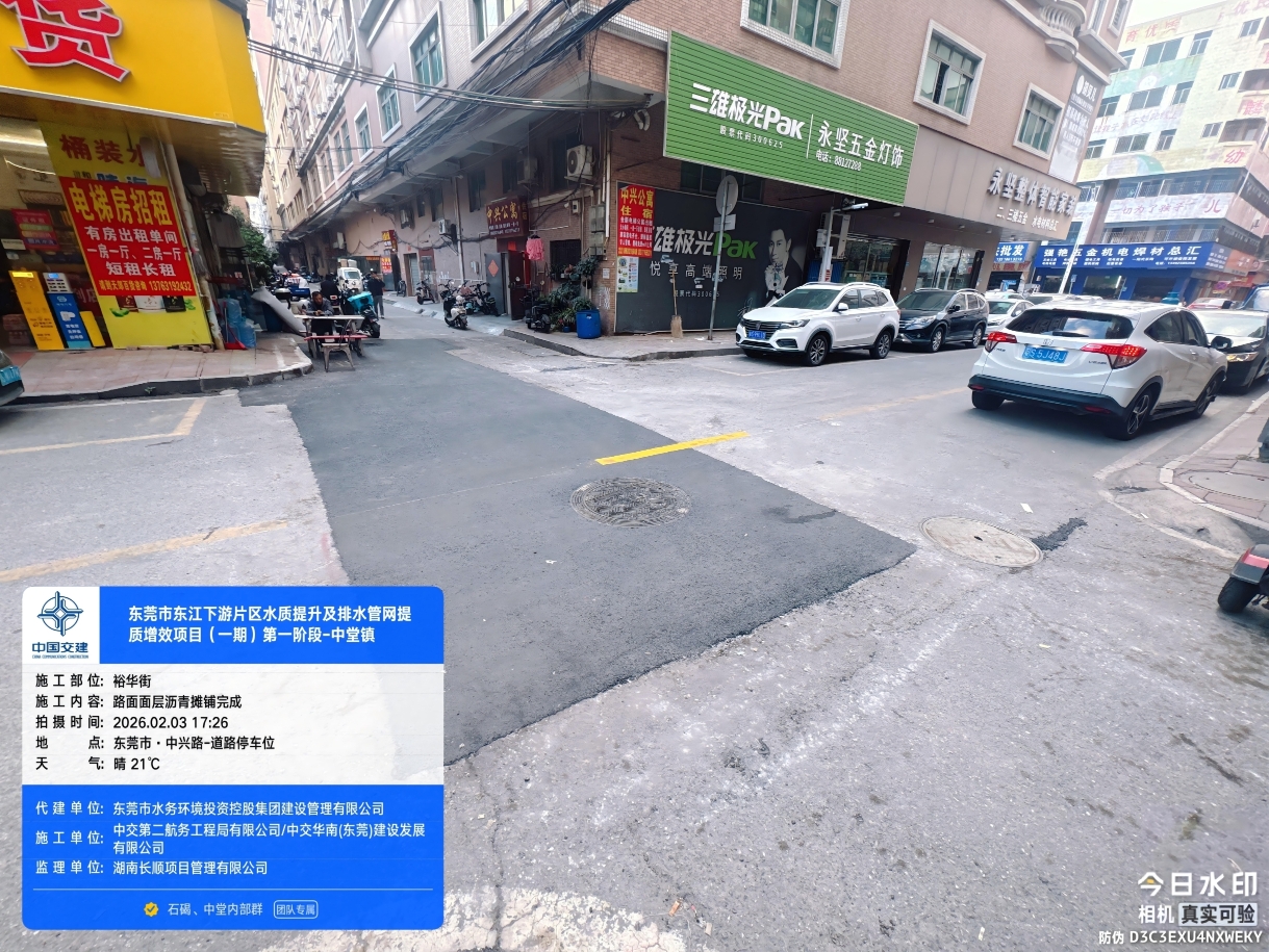尊敬的市民,您好!您反映的问题已收悉,现回复如下: 我们于2026年2月4日10:52电话与您取得联系,并对诉求进行办理。您反映问题的工程为东莞市水务环境投资控股集团建设管理有限公司(下称“建设公司”)负责代建管理的东莞市东江下游片区水质提升及排水管网提质增效项目一期第一阶段(中堂镇),施工单位为中交第二航务工程局有限公司。 关于您反映的施工问题,建设公司责令施工单位立即进行处理。经核查,您反映的位置已于2026年1月25日恢复路基混凝土层,其间需等待其他施工点完成路基混凝土层施工后统一铺设沥青,因此暂未恢复沥青面层。2月2日项目沥青班组入场统一恢复沥青面层,因赶工推进项目,现场短时出现围蔽散乱现象。对此,建设公司已要求施工单位加强安全文明措施管理,科学合理安排施工工序,全力加快路面恢复工作进程,杜绝类似情况再次发生。目前,您反映的位置已于2026年2月2日完成全部施工,路面恢复正常通行。由此造成不便,敬请谅解。 2026年2月4日,工作人员致电联系您告知上述情况。如有疑问,欢迎致电水务环境集团24小时客服热线96968,感谢您对我们工作的理解和支持!