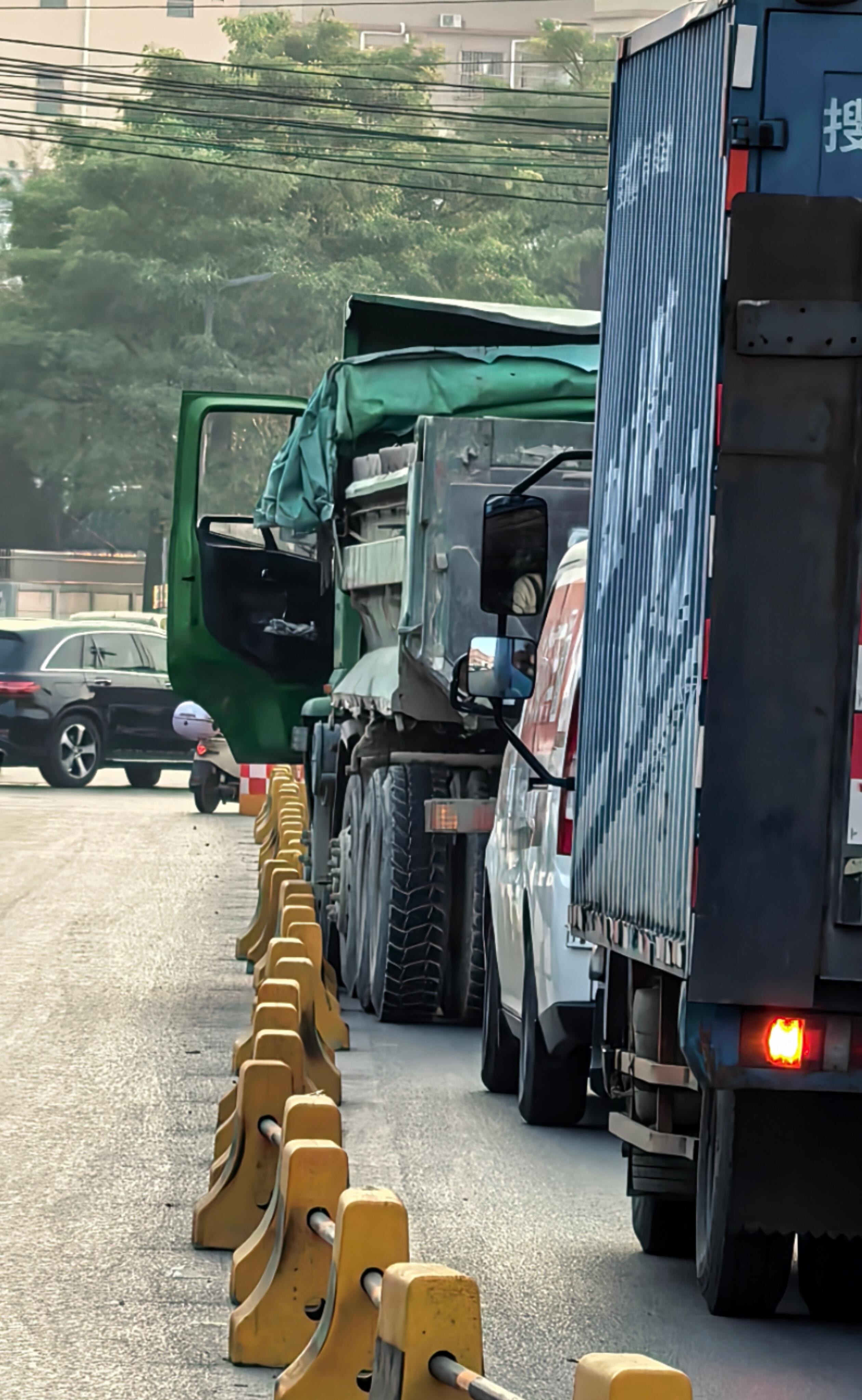黄江镇田心村嘉宾路中间放有墩子,每天经常塞车