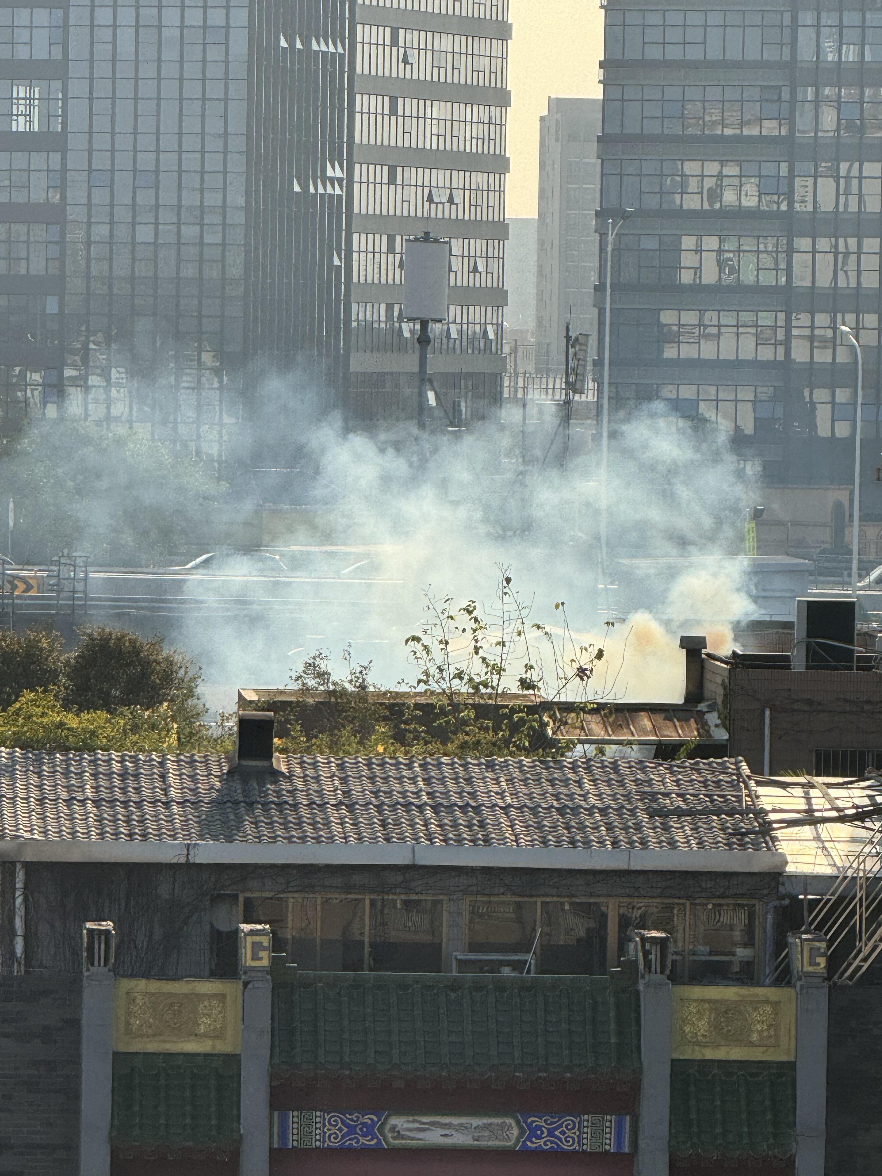 道滘镇文一路华南茶叶交易中心商铺(紫珺堂)楼顶每天下午三点多开始到晚上七点多焚烧浓烟,污染空气,请求环保部门帮助处理,谢谢