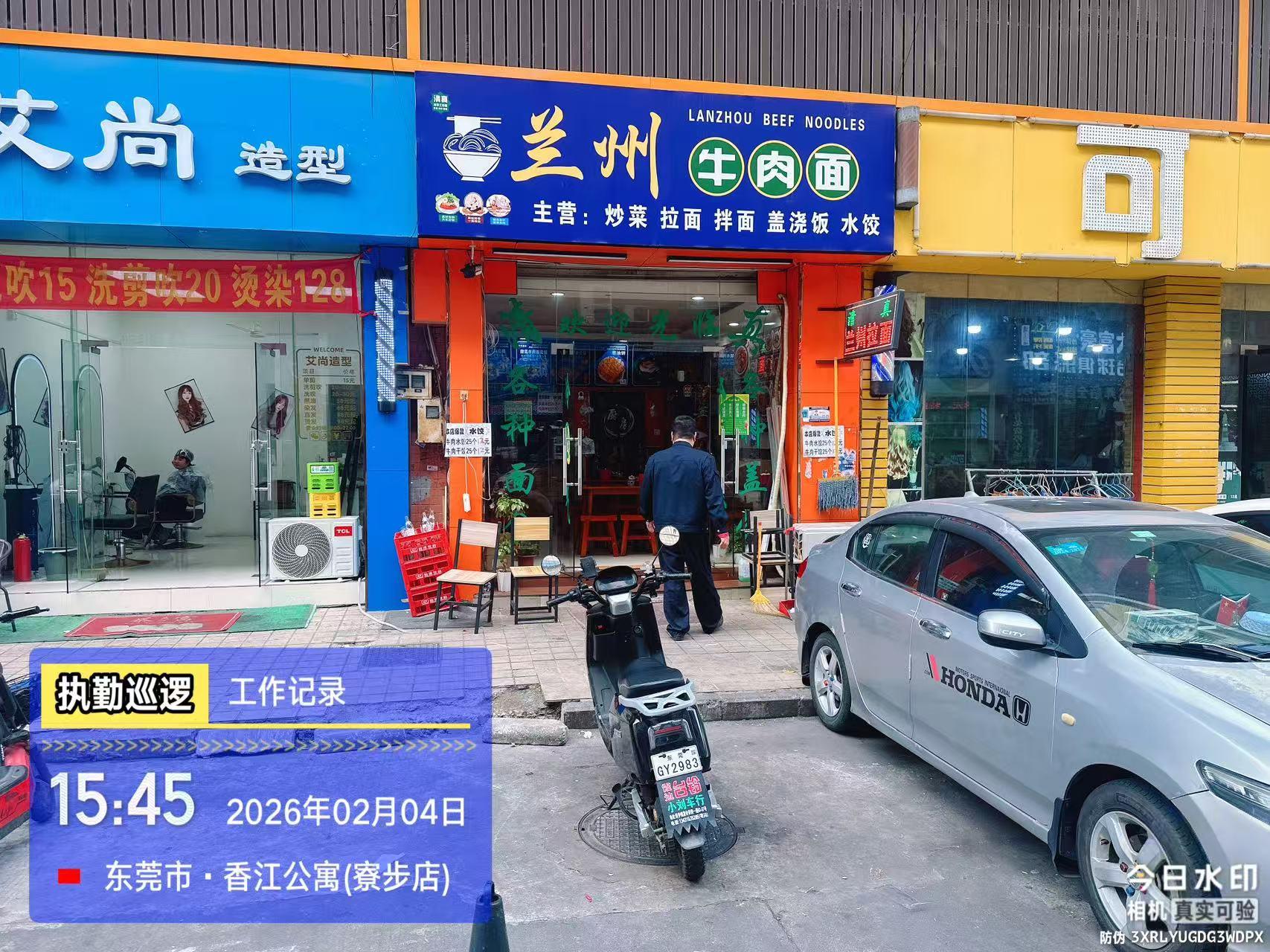 尊敬的市民,您好!您反映的问题已收悉,现回复如下:城管分局执法人员于2026年2月4日下午到寮步镇百业东二路兰州拉面馆,现场已对当事人教育,并告知被投诉一事,责令其限期整改。下来将进一步加强巡查监管。感谢您对我们工作的理解和支持!