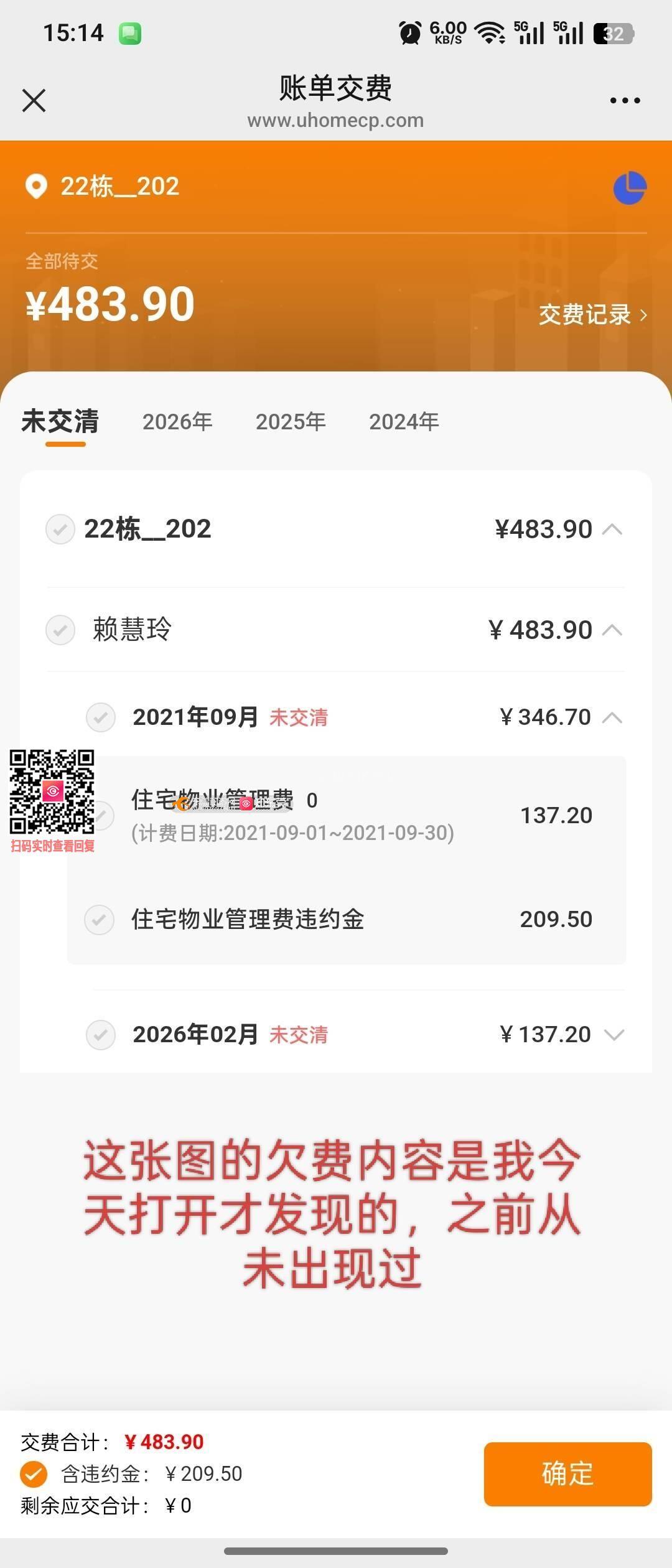 投诉人:樟木头碧河花园小区业主 投诉事项:物业公司违规认定欠费、违规收取滞纳金 事实与诉求: 本人房屋已于上月售出,新业主办理缴费时,物业公司无故声称我2021年9月起存在管理费欠费(管理费137元,另计滞纳金200余元)。 1. 该物业2021年9月入驻,启用统一线上缴费系统,多年来从未以任何形式告知我存在欠费,系统内也无欠费提示; 2. 房屋过户前,经与物业核对欠费情况,当时明确答复无欠费; 3. 现物业系统仅可查询2023年后缴费记录,无法调取2021年9月后数据,却要求我提供多年前线上缴费凭证,无合理依据; 4. 物业公司无有效证据证明我欠费,却强行认定欠费并计收滞纳金,侵害业主合法权益。 诉求:责令物业公司撤销违规欠费认定及滞纳金,向新业主澄清情况,不得影响新业主正常缴费入住。