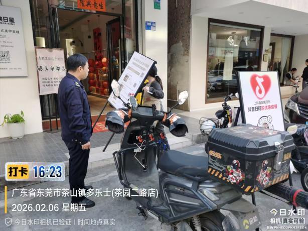 尊敬的市民,您好!您反映的问题已收悉,现回复如下:接到投诉后,茶山镇城管分局工作人员于2026年2月6日16时26分联系您,告知您相关处理情况。已安排工作人员于2026年2月6日16时23分到达被投诉地点进行处理,现场确实有霸占停车位的情况。茶山镇城管分局工作人员已对商铺负责人进行相关法律法规教育,责令其将霸占车位物品撤走,现场已处理完毕。感谢您对我们工作的支持,同时建议以后遇到此类事件,可直接拨打茶山镇城管分局24小时值班电话0769-81859398进行反映。