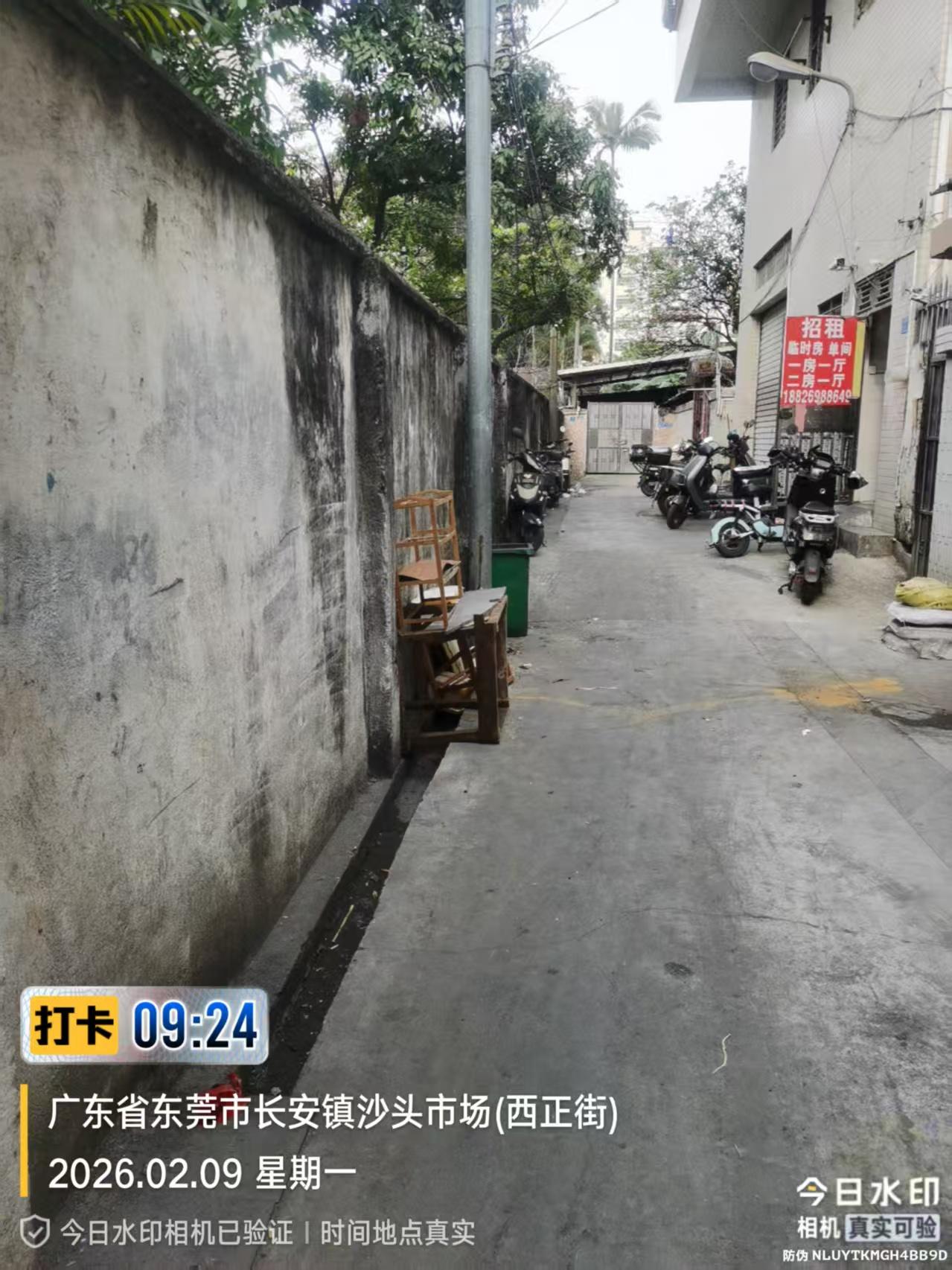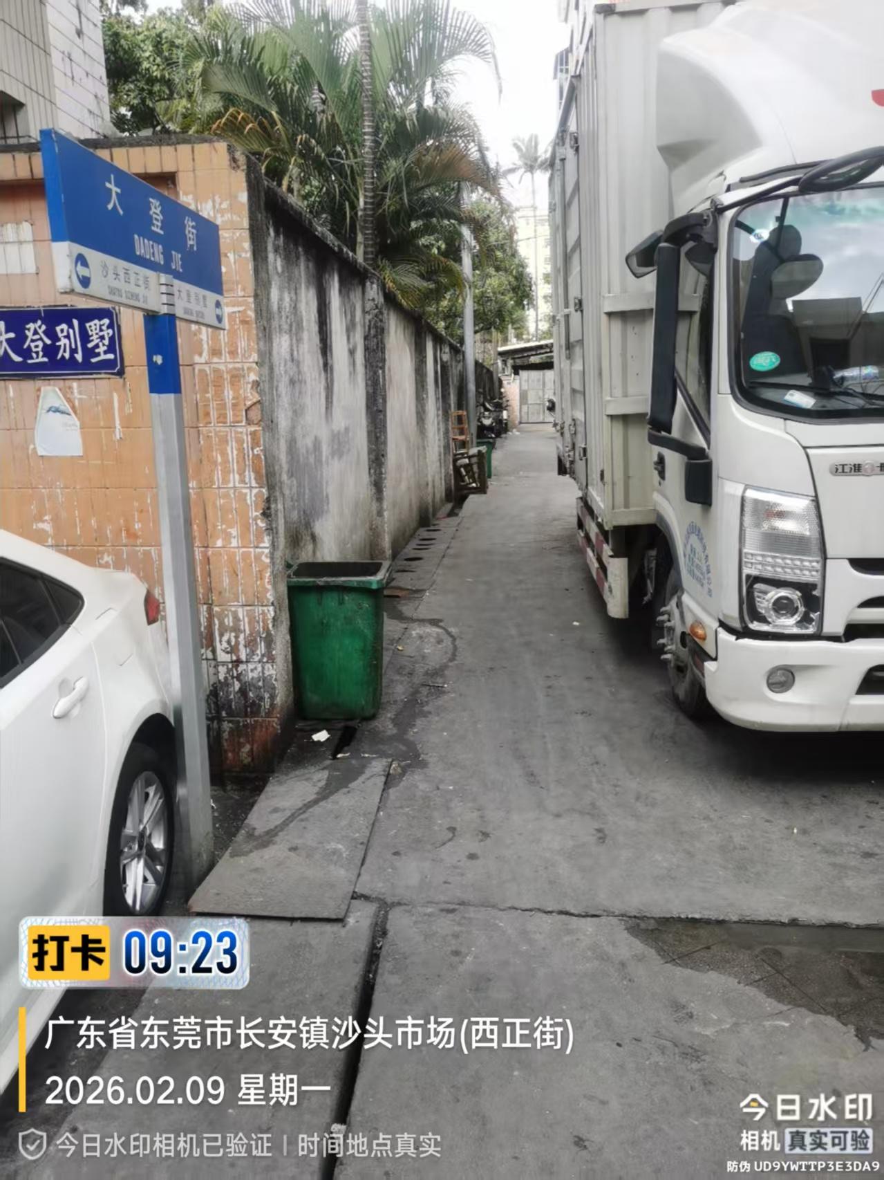 尊敬的市民,您好!您反映的问题已收悉,现回复如下:接到投诉后,我社区工作人员于2026年2月9日9时23分致电市民,9时24分安排人员到达投诉地点沙头社区西正街38号进行检查,经现场勘察,在现场未发现投诉所诉情况,我社区工作人员拍照取证离开。接下来,我社区工作人员将对此投诉情况进行跟踪监督,加大该路段的巡查频次。如有疑问,请联系东莞市长安镇沙头社区综管办,联系电话:0769-85335788。感谢您对我们工作的理解和支持!