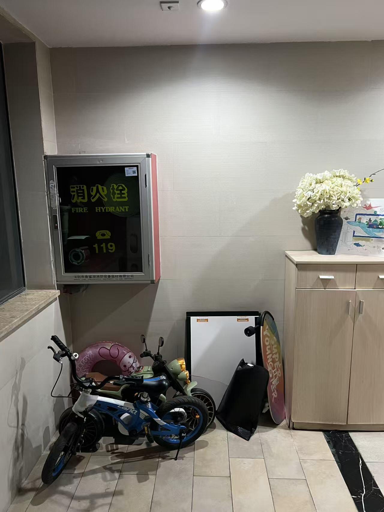 东莞南城宏图路香树丽舍1栋2114左边消防栓堆放很多杂物 严重影响消防安全隐患