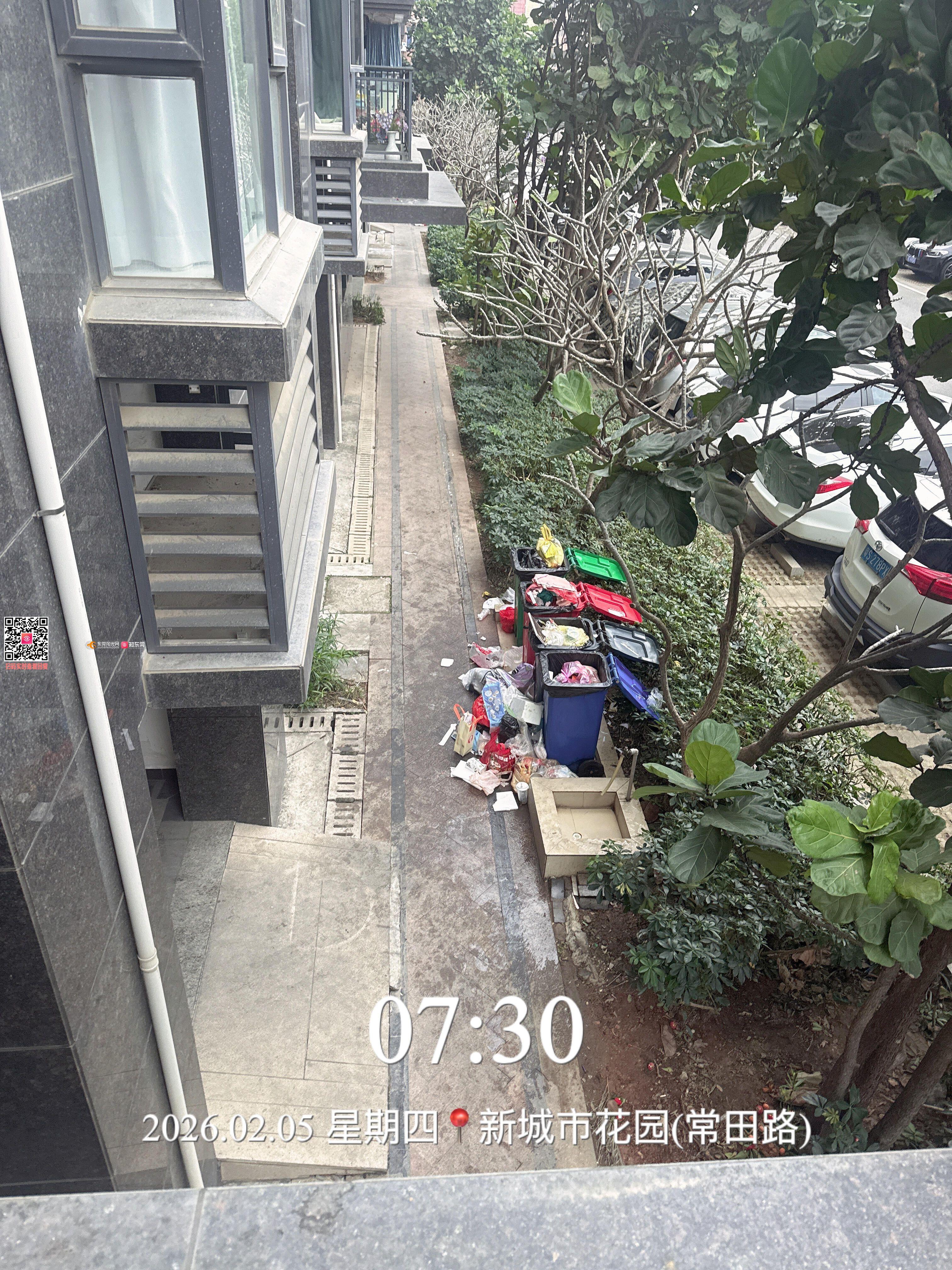 1. 垃圾点布局不合理,贴近居民楼 小区垃圾收集点紧邻本人居住楼栋,与2楼阳台直线距离不足[5米],未符合垃圾收集设施与居民住宅的安全间距规范,恶臭源头直接贴近居住区域,违反《城市生活垃圾管理办法》相关规定。 2. 清运频次不足,夜间污染严重 该垃圾点长期存在清运缺位,夜间(22:00至次日凌晨)无清理作业,大量生活垃圾(含厨余垃圾、塑料袋等)堆积溢出垃圾桶,散落至绿化带及步道旁。垃圾腐败产生的浓烈异味直飘2楼阳台及室内,导致本人及家人无法开窗开门通风,夜间休息、日常起居均受严重干扰,已持续多日影响正常生活秩序。 3. 环境卫生脏乱,存在安全隐患 垃圾乱堆乱放污染周边绿化带,滋生蚊虫、细菌,既破坏小区公共环境美观,又存在病菌传播的卫生安全风险,不符合小区物业管理及城市环境卫生管理标准。