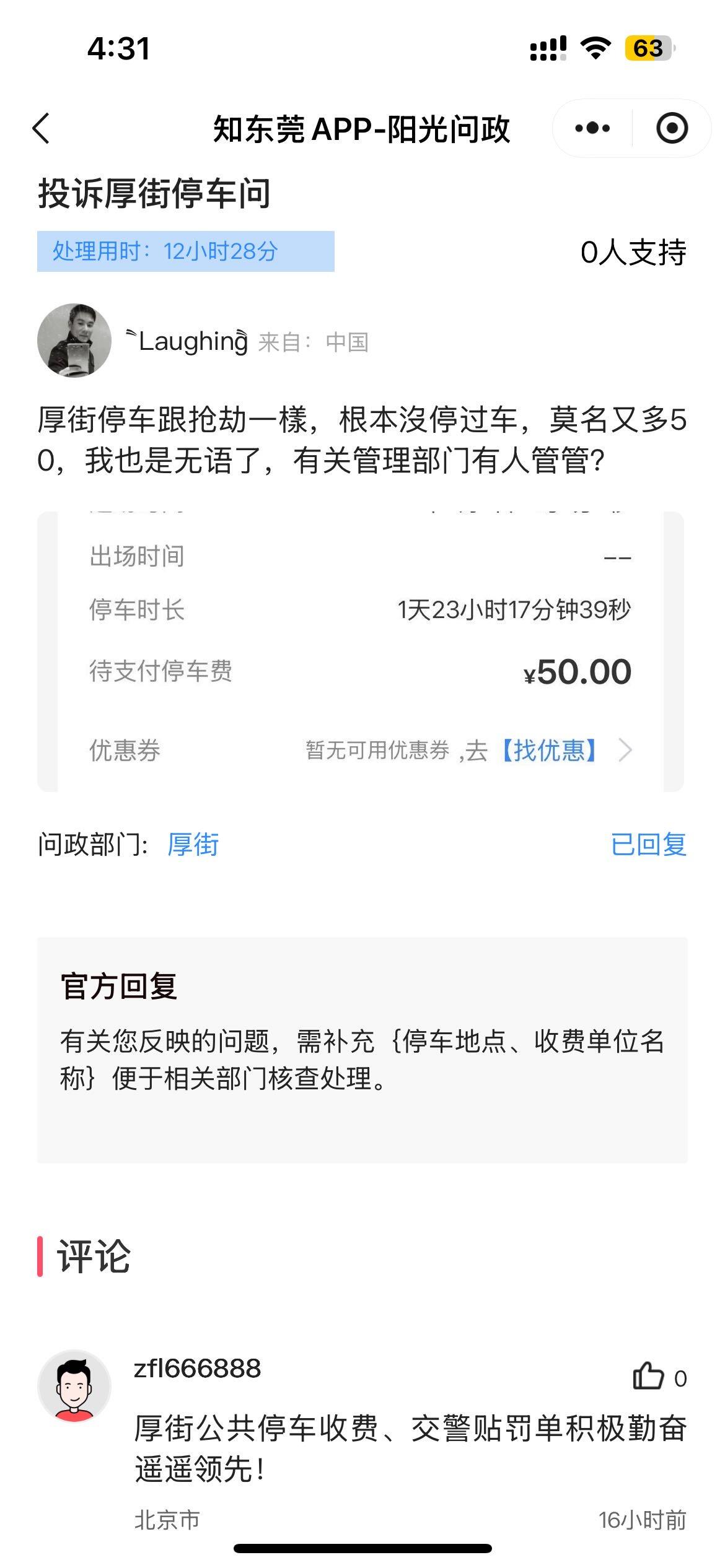 厚街路边停车问题