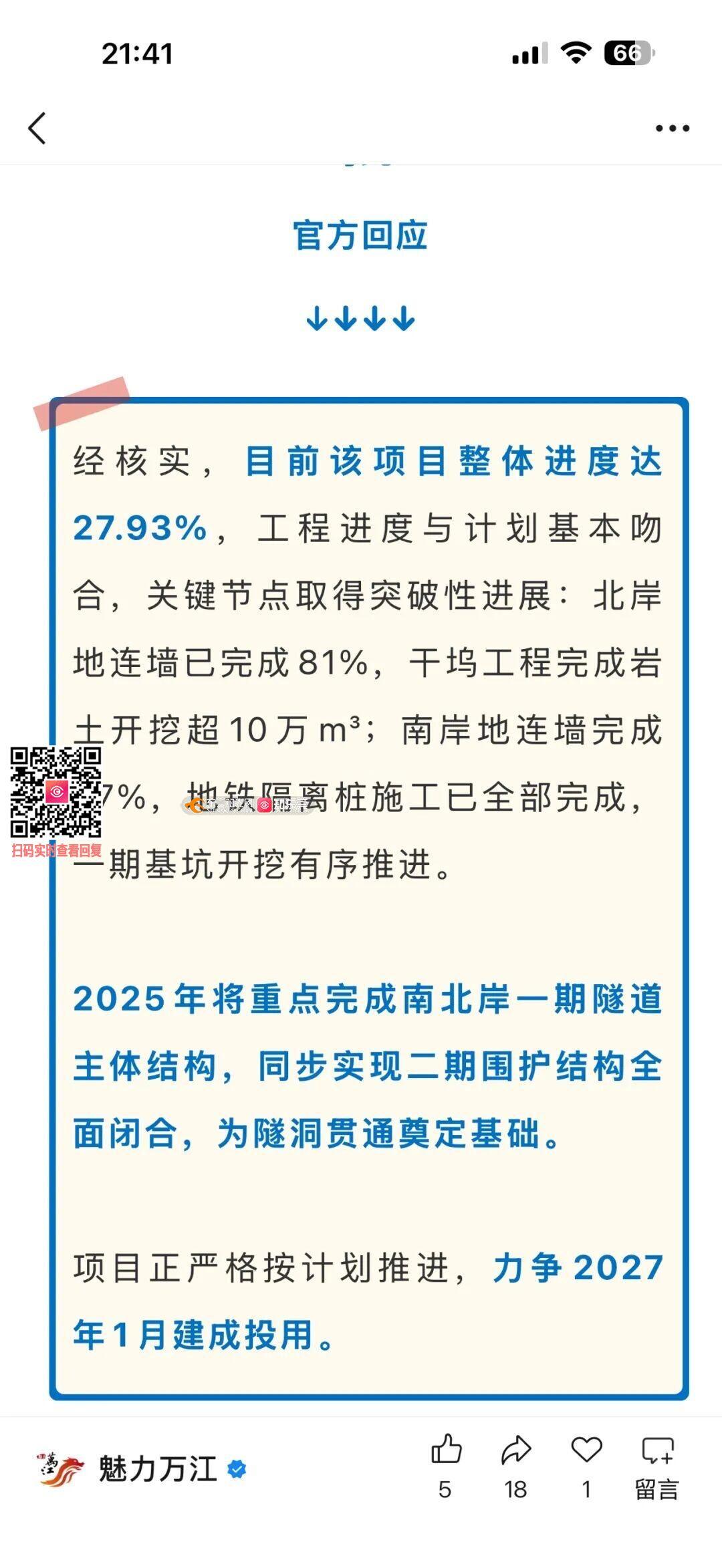 我的三个问题:鸿福路过江隧道工期为何延迟一年?到底何时投产?曲海桥下绿道何时恢复通行? 我听到的消息是部分工程因为质量问题返工,延期半年。昨天看到延期一年,到底发生了什么事情?