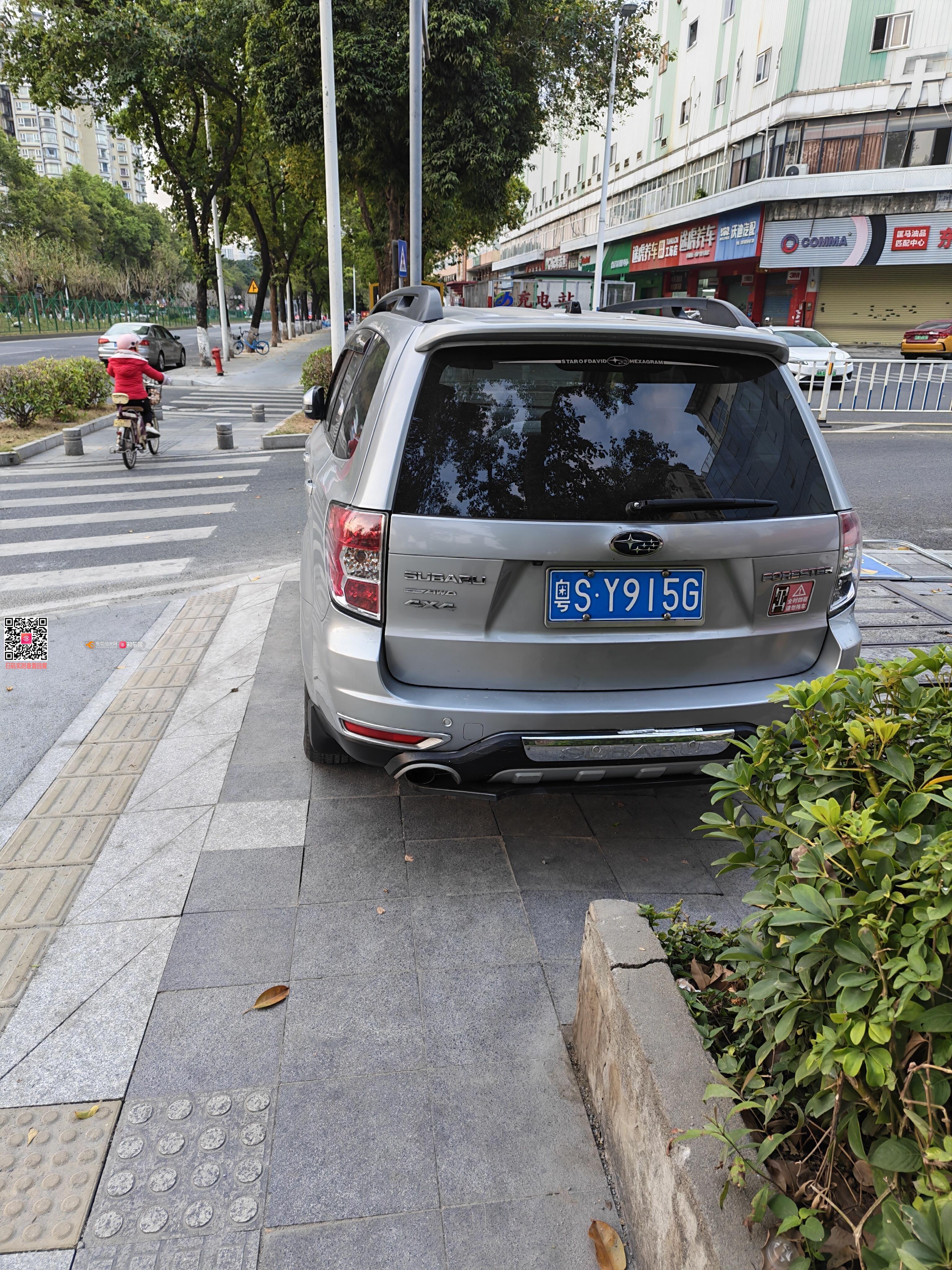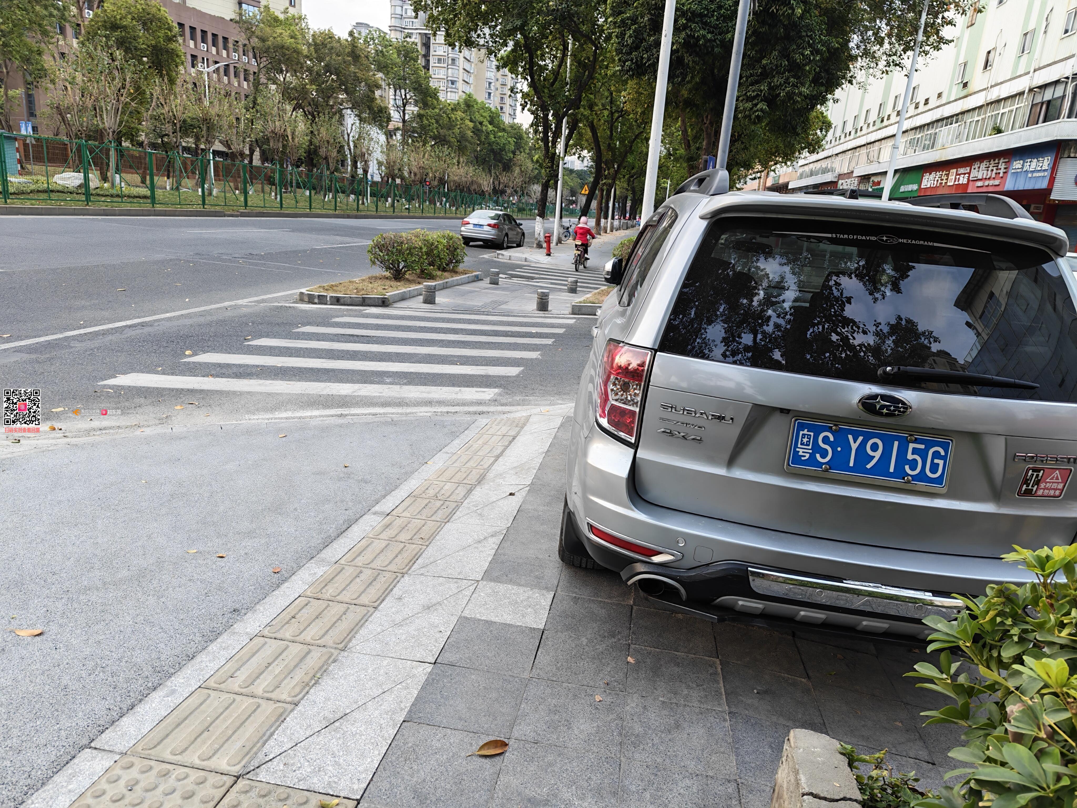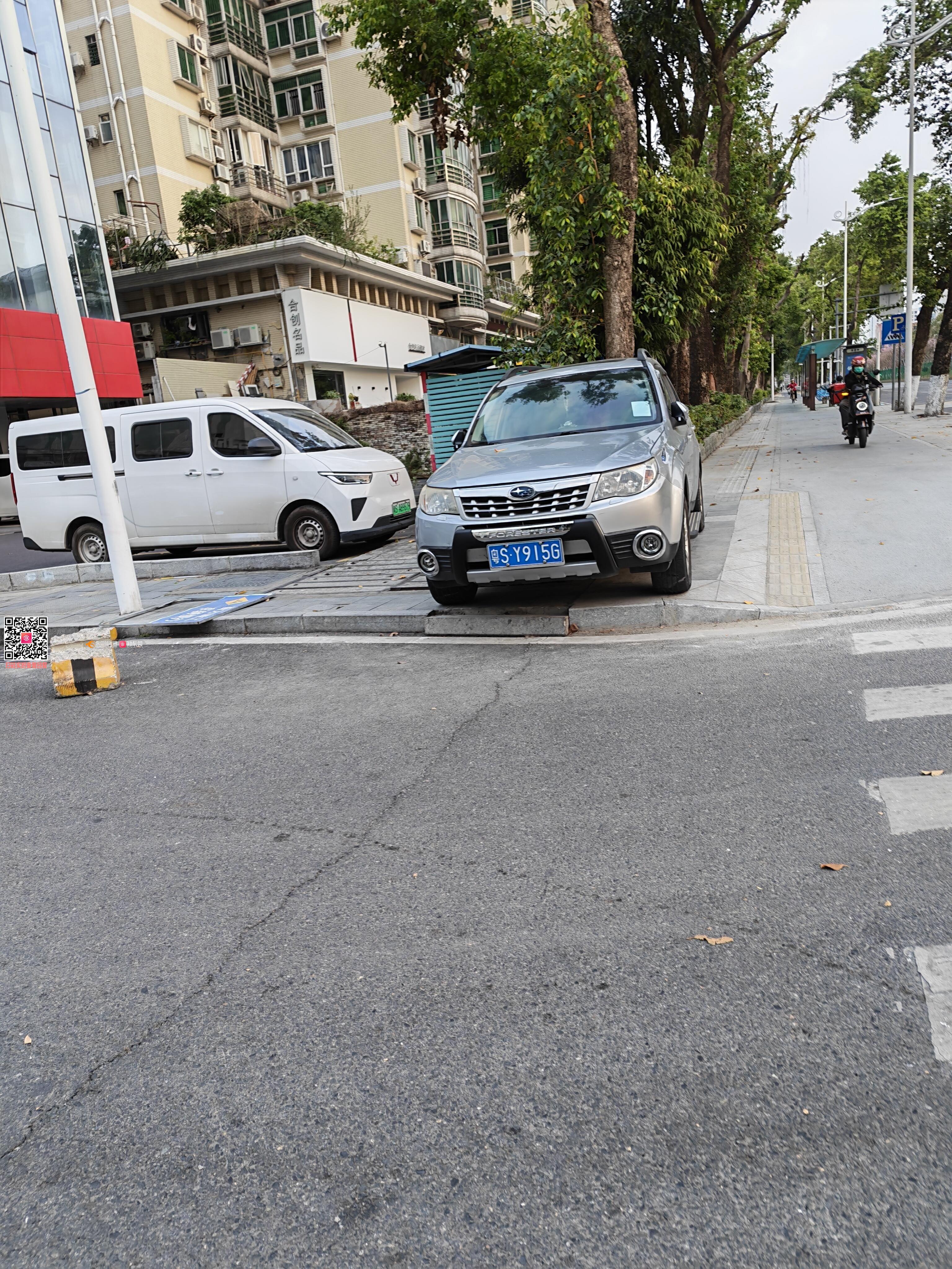 粤SY915G违停非机动车道,且破坏公共设施