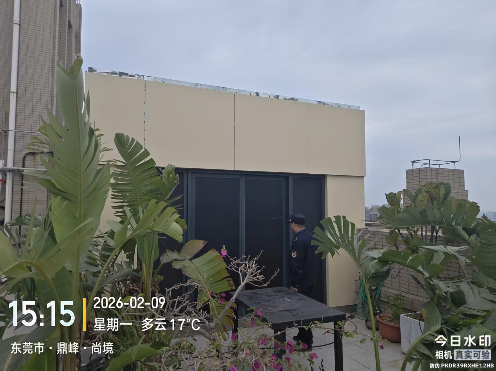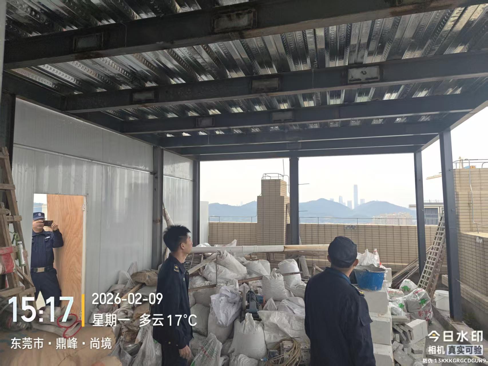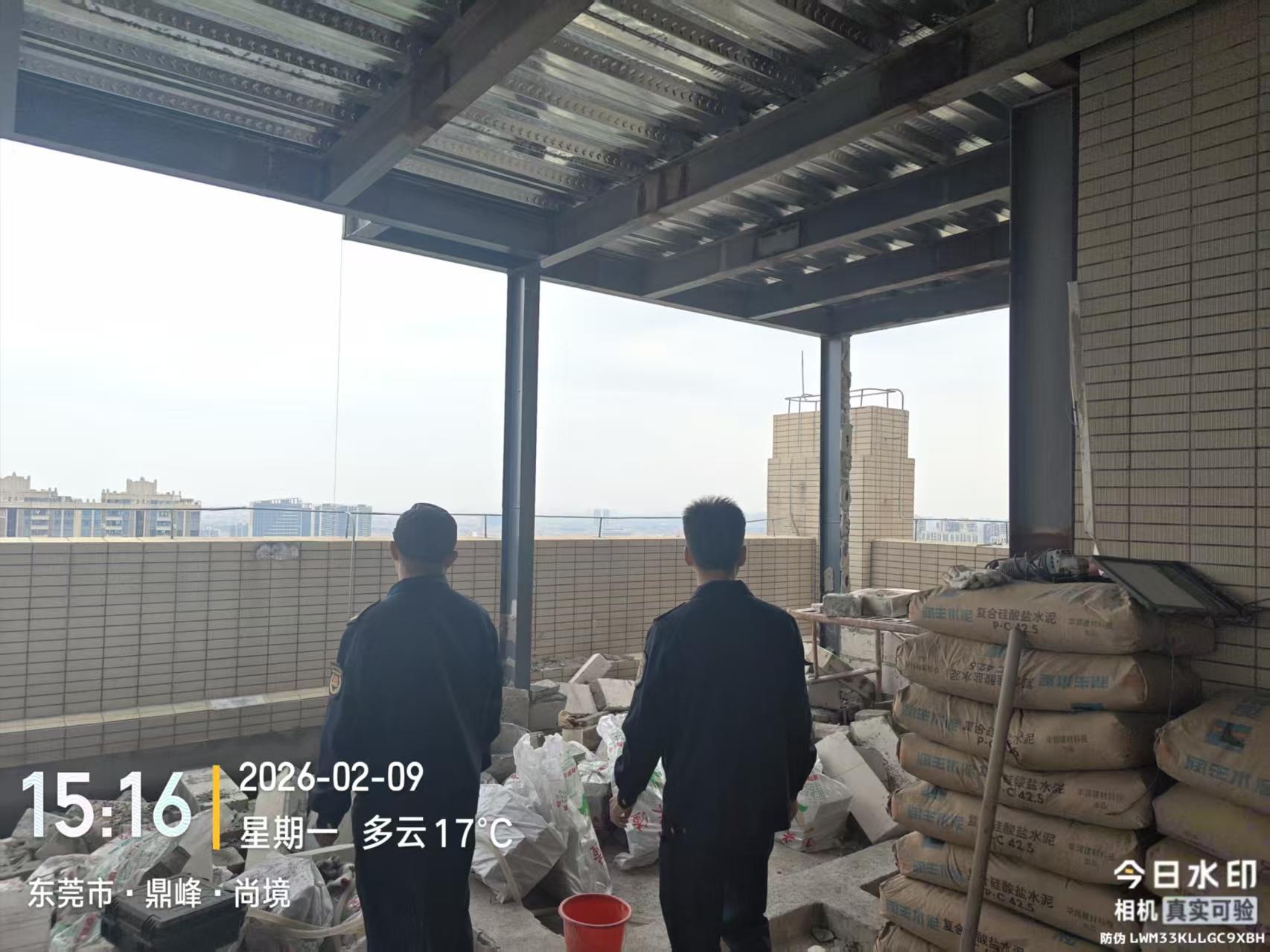 尊敬的市民,您好!您反映的问题已收悉,现回复如下: 城管分局执法人员会同小区物管于2026年2月9日到现场进行勘验检查,经核查,上述投诉反映位置鼎峰尚境二期4栋一单元楼顶存在私自扩建情况,现场处于停工状态。鼎峰尚境二期4栋一单元楼顶存在搭建建筑物行为。于2月6日分局已对该建筑物砖墙进行拆除。现场处于停工状态。对上述二处问题搭建物正跟进处理中。同时要求物业公司做好小区内物业管理工作,加强对建筑的监管,及时制止违建行为。 下来将进一步加强巡查监管。感谢您对我们工作的理解和支持!