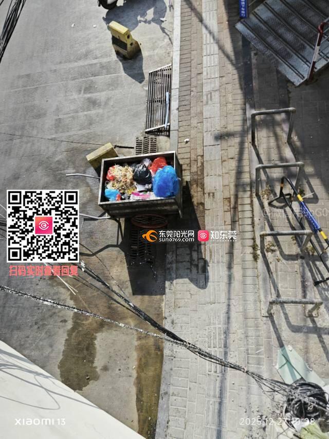 第三次投诉,从2025年11月正式投诉到现在,过去了4个月,根本没有解决问题,24号回复了已通知附近早餐店,25号那些早餐店照常扔厨余垃圾到该位置,地面全是厨余垃圾的汤汁,每次经过,以及出门,都是臭味,附近全是苍蝇老鼠蚊子,到底是懒政还是利益输送?所谓的标识就打印一张A4纸,苍蝇那么小的字。该位置是人行通道,距离居民楼仅几十公分,往前10米就有一个垃圾站,却在步行街的人行出入口摆放一个垃圾车影响通行以及居民的正常出入,每天回家经过都要忍受恶臭味。提供的两个电话打不通,投诉无门。东莞大扫除了这么多轮,都没有解决这个问题,请你们重视此问题,彻底解决该处摆放的垃圾车以及垃圾问题。这是人行通道还是堆放垃圾的场地?