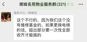 南城名苑小区是村建农民公寓(楼龄约为20年)。现在小区电梯老旧,偶尔会出现了下坠的安全隐患,乘坐的老人和小孩受到了惊吓。现在业主希望能够使用这笔维修基金进行电梯更换,但是物业却回复这个小区没有设立维修基金(第一张图为聊天记录证明),而业主每年都有缴纳公共维修费用(第二张图为物业费缴纳明细)。 现核心诉求如下: 1.要求物业公司对“维修基金缺失”问题作出正式说明,公开相关账目。 2.请求政府指导我们依法向物业公司追索相关维修基金。