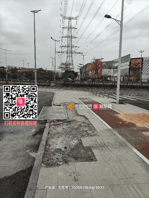 厚街双岗美宝家私对面人行辅道井盖周边坑坑洼洼,烦请安排处理,谢谢!
