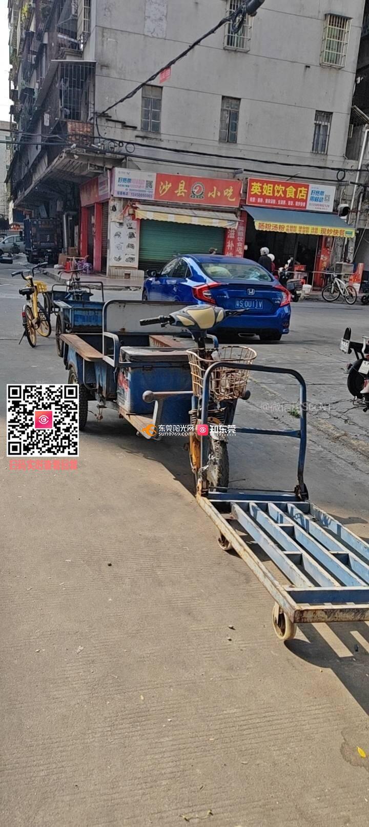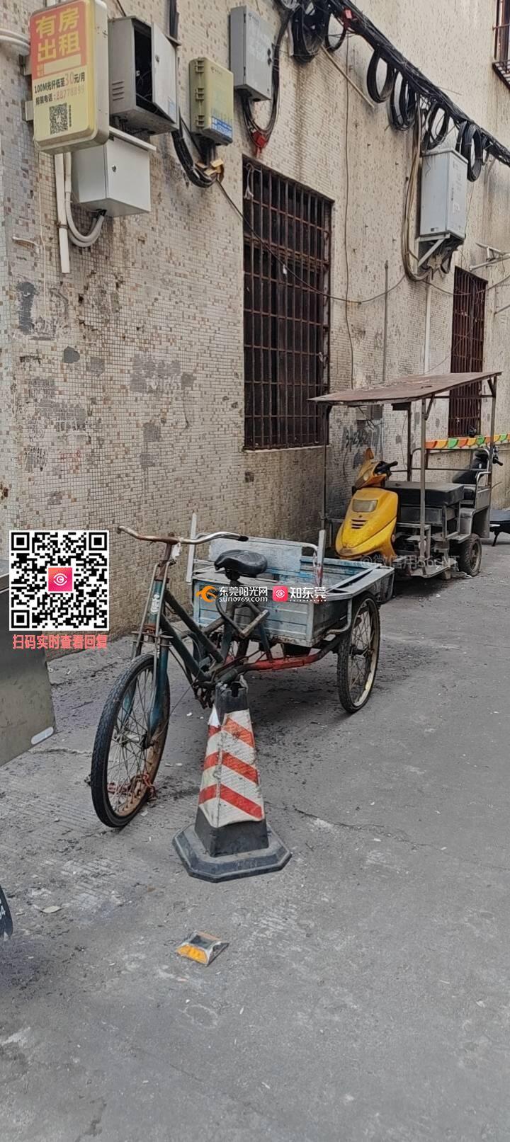 石龙西湖区周边住户使用废弃三轮、地锁占用公共道路用于停车