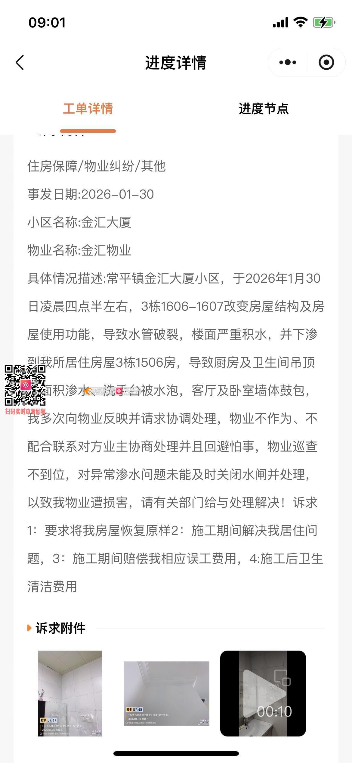 1月30日金汇大厦3栋1606-1607水管爆漏水泡了我房3栋1506房间,楼上业主不承担修缮,物业也不作为,12345投诉草草了事都没有联系当事人