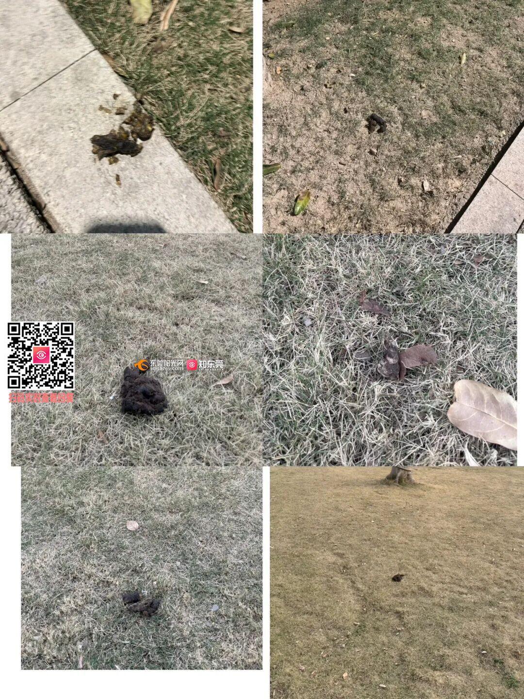 尊敬的市民,您好!您反映的问题已收悉,现回复如下: 根据您反映的情况,我们于2月14日15:10与您取得联系并确认问题。我们派环卫工人对区域的草坪杂草、地面垃圾及宠物排泄物等进行了集中清理。下一步,将加强该区域的常态化巡查与保洁力度,督促管养单位切实履行维护职责,提醒养犬人及时清理粪便,共同维护城市环境。对于您提出的建议,我们将认真研究并逐步采纳。由于执法取证困难,目前仍以劝导教育为主,尚未开出罚单。 如有疑问,请联系:东莞市城市管理和综合执法局万江分局,联系电话:0769-23380442;感谢您对我们工作的理解和支持!