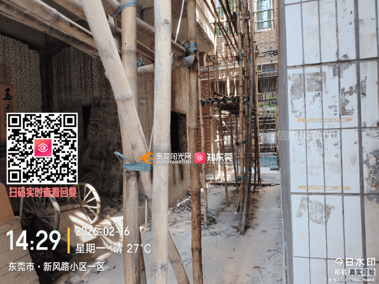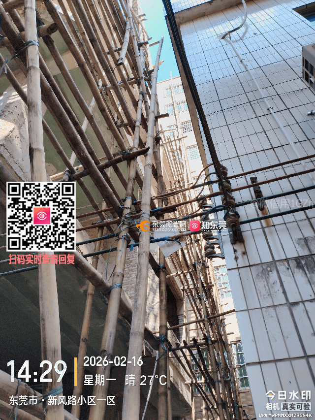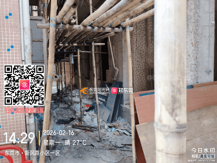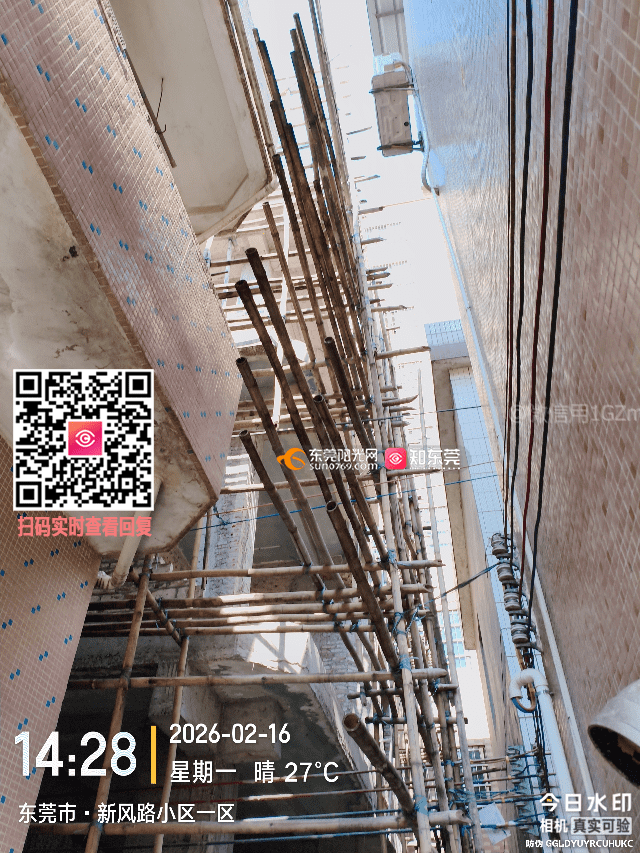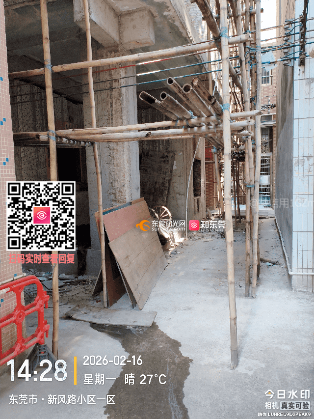有一个房子几年前开始装修,装修到现在还没有装修好,脚手架挡着道路,然后非常突出,有安全隐患