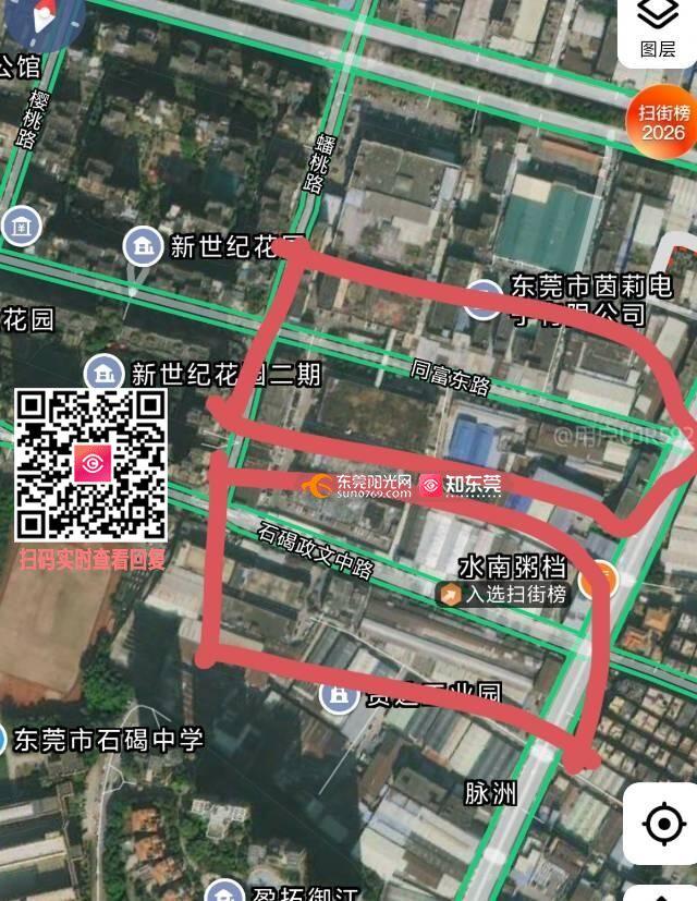 石碣中学北门的政文西路和同富东路(图1),晚上路面太黑了,路灯被树叶挡住,希望领导们亲自到场了解一下,那条路多少人接送孩子都要经过,希望要么把路灯调低一点,要么把树砍矮一点,谢谢,盼回复!