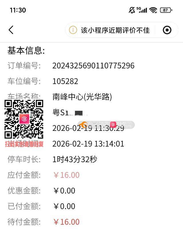1、春节期间,莞停车等道路内停车位经营单位予惠于民,让市民可以免费停车。但泊车蜻蜓却没有相关优惠措施,依然收取高额停车费。 2、泊车蜻蜓道路内停车位没有明确标识,致使车主不清楚该车位是由泊车蜻蜓经营,误以为该车位在春节期间有免费停车予惠于民优惠措施。 3、本人于2026年2月19日11:30将车停入南城海德汇一城对面光华路道路内泊位后,直到12:53才收到泊车蜻蜓微信系统发来的停车入位通知。往常停车在几分钟内就会收到停车入位通知,而当天我停了一个多小时之后才收到有关通知,以致错过在半小时免费时段内将车及时驶离时机,从而被泊车蜻蜓强行索要和催缴高额停车费。后面通过与该公司沟通,该公司客服人员说当天我延迟收到停车入位通知是因为该公司路内巡查工作人员春节放假导致人力不足。但这属于该公司内部管理问题,所以本次产生的停车费纠纷责任应由泊车蜻蜓一律承担。且该公司服务人员客服人员态度极差,对于车主的询问和诉求一直避重就轻、答非所问,毫无想要解决问题的态度。 4、同一地段汇一城停车场停车两个小时内停车费才7元,而泊车蜻蜓所经营光华路路边泊车位停了不到两小时却向车主索要高达16元停车费。该收费标准高出同路段停车场一倍有余,属于压榨百姓。 诉求:1、希望泊车蜻蜓撤销本次因该公司管理不善、服务不到位造成的停车收费。2、希望政府有关部门对该公司的高停车收费标准予以整改,使之不高于同路段普通停车场收费标准。
