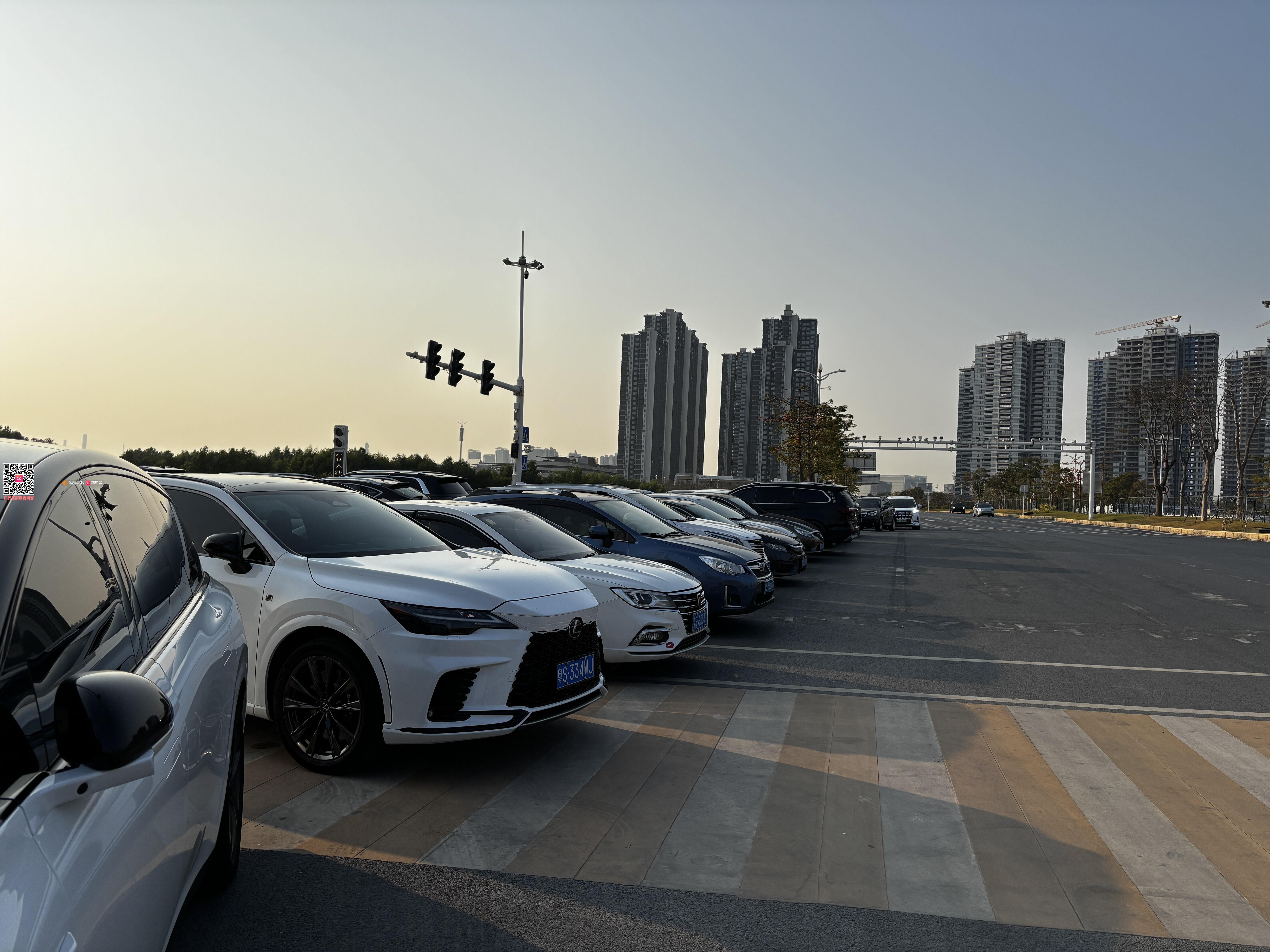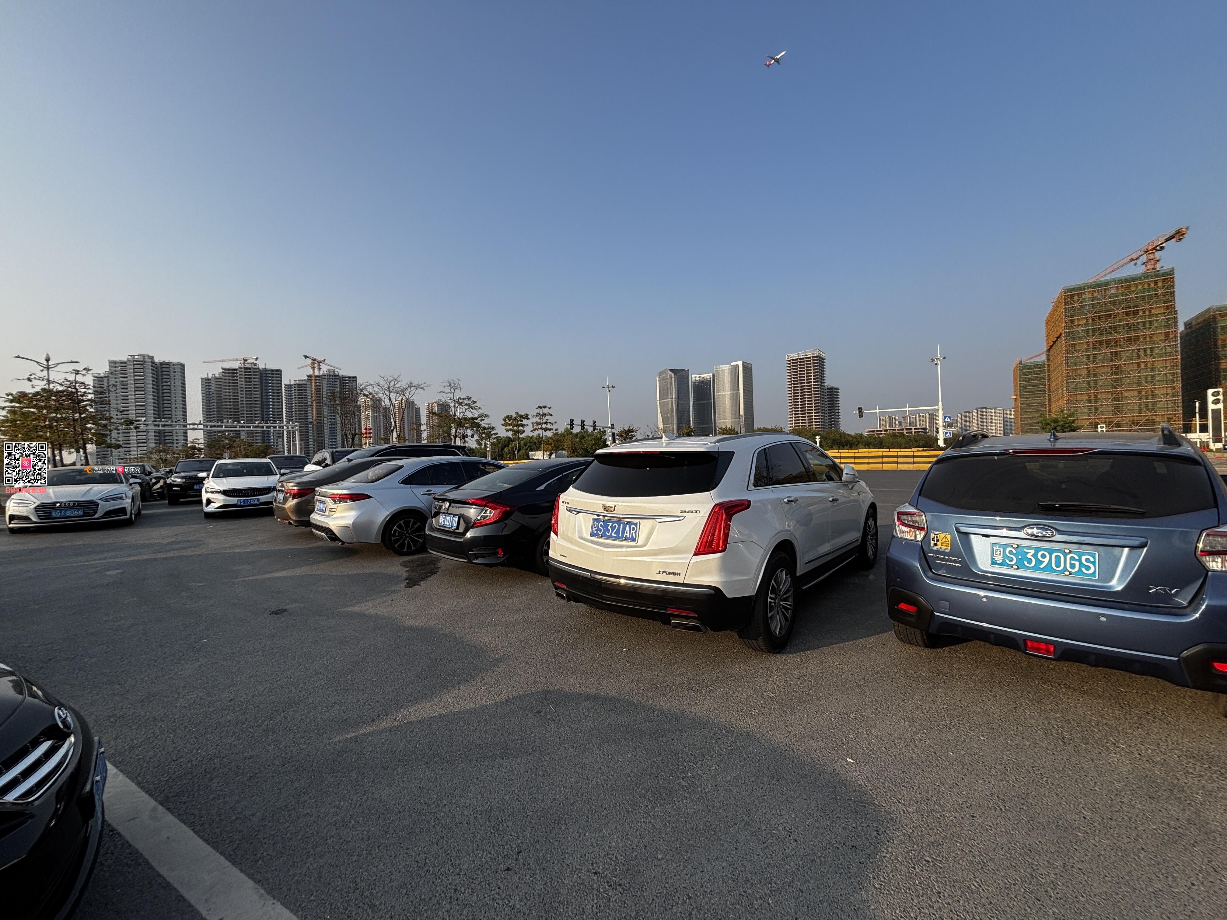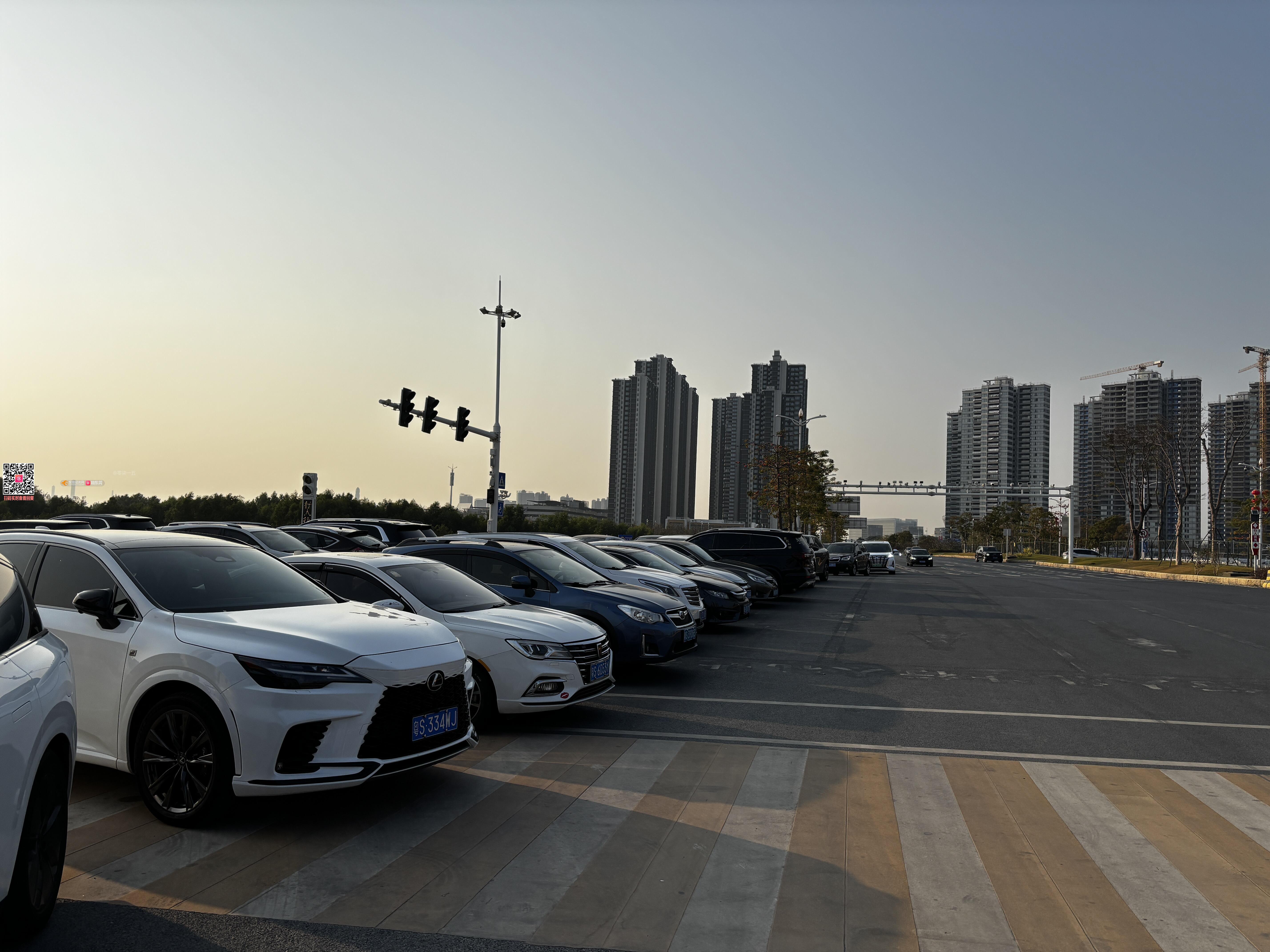 万象滨海购物村停车场前红绿灯十字路口乱停乱放,最前面的这一排乱放乱放,把后面十几台车都堵住了,这里允许停放可以,但也希望别把路堵了,后面这么多台车,全都在等第一排堵车的车主来挪车