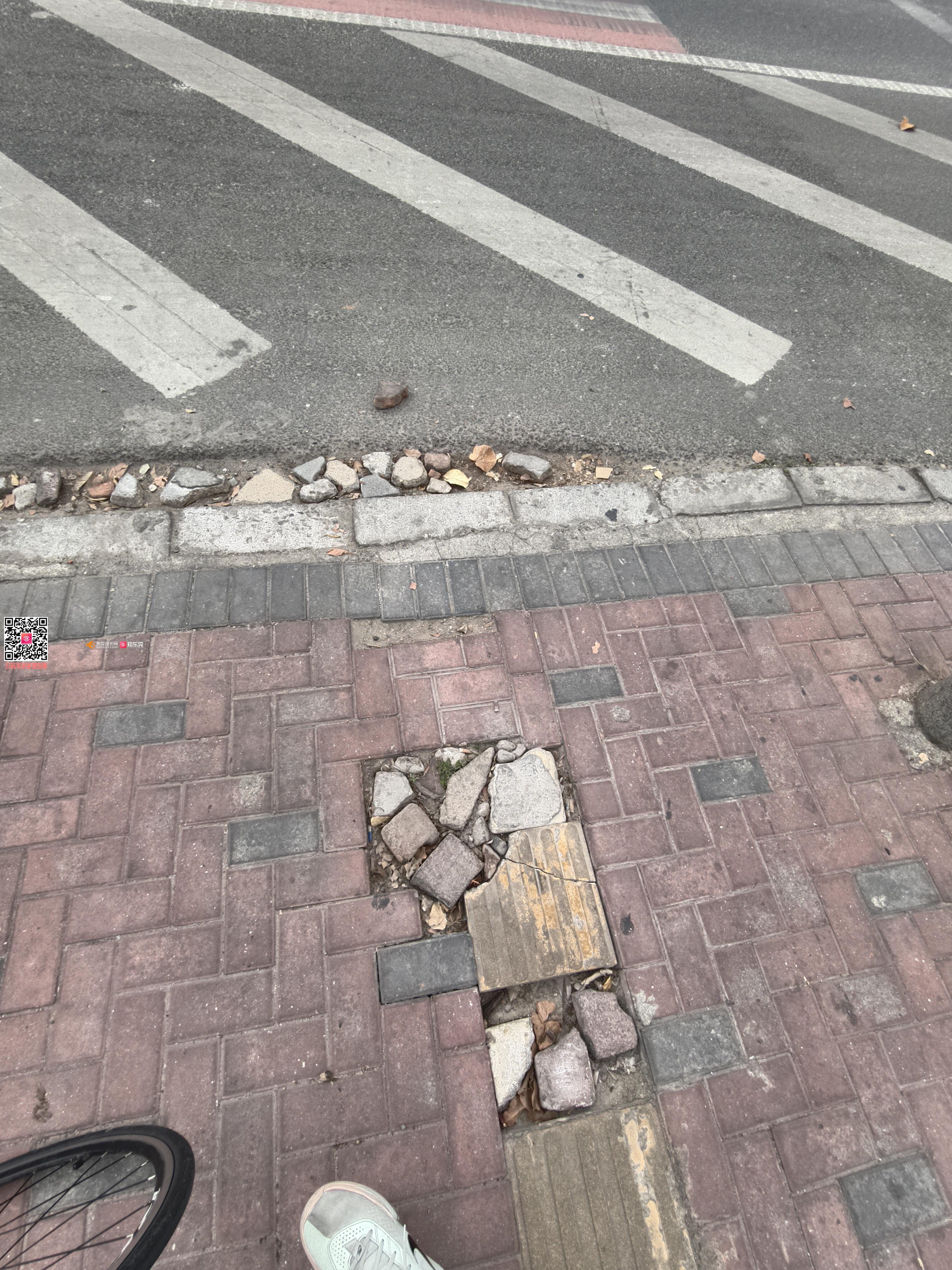 在东莞市石排镇国际公馆小区附近的圆盘道路,非机动车道及人行道盲道有众多的坑坑洼洼砖已碎。今日骑车时导致车爆胎链子掉了,人也差点受伤。这里的道路破烂已不是一天两天。请在一星期内给我回复并把路修好
