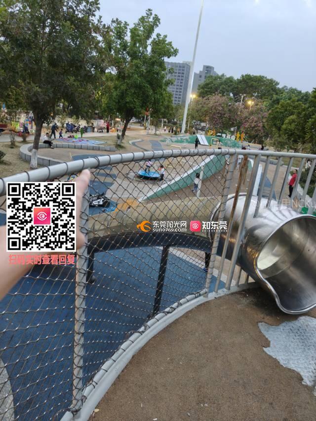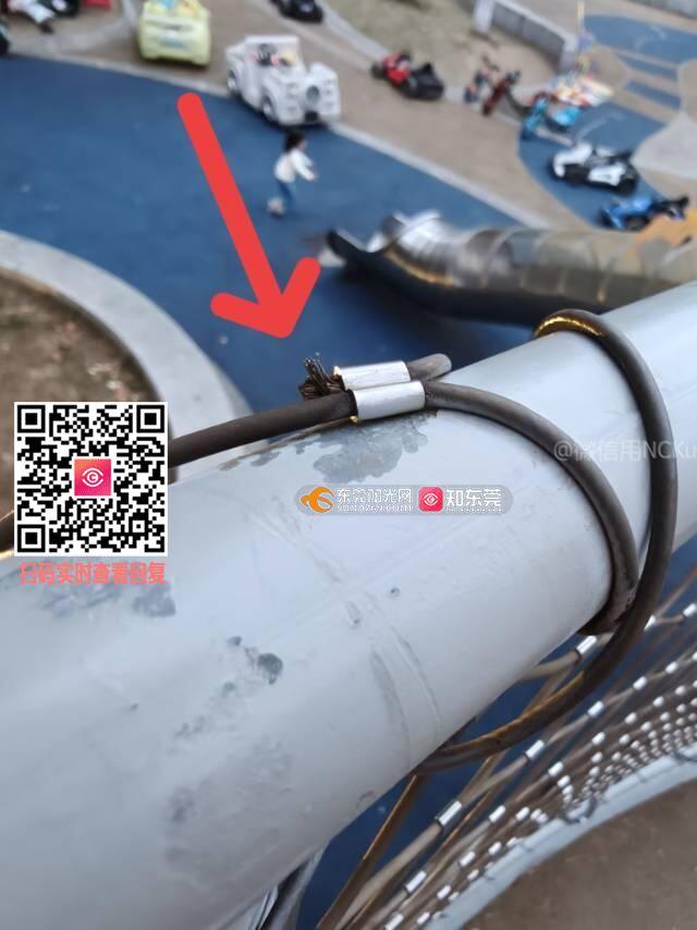 在这个两层滑滑梯这里有裸露的钢丝,手放上去不小心的话,会扎到流血,儿童游玩设施已经有部分轻微损坏 ,滑滑梯防护玻璃烂了,地址在茶山公园里面的茶山儿童友好公园