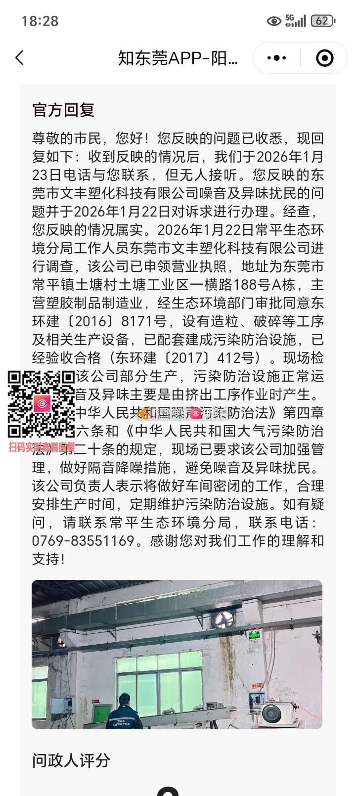 投诉常平文丰塑化科技有限公司两次仍未见整改