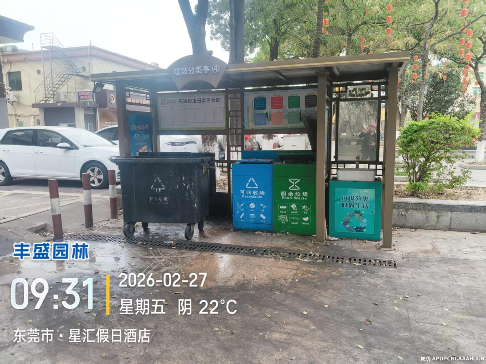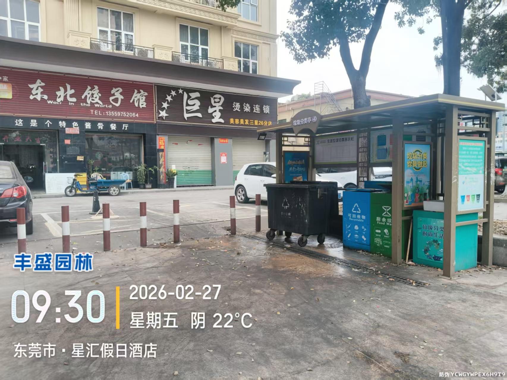 我是东莞市清溪三星星汇假日酒店一楼店铺的餐饮店自从搞垃圾分类后我餐饮店门口就设立了一个垃圾站,该垃圾站卫生不达标,臭气熏天,去年有反应过,但效果不佳,望领导重视整改