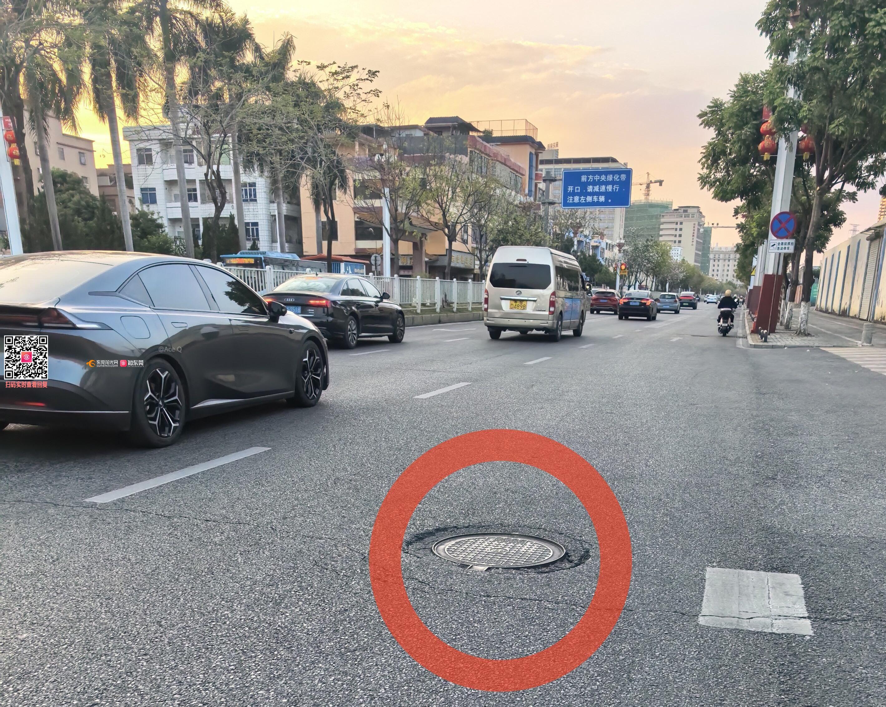 茶山镇站前路、茶兴路道路路面、井盖不平整