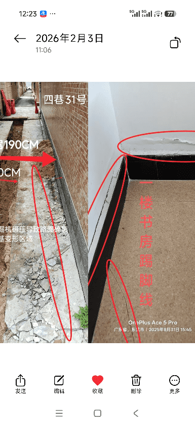 本人此前提交工单号566553(28020311380284401)的“雨污分流工程施工管理不当导致房屋损坏”投诉,因平台传输问题,住建部门仅收到1张现场图片,现补充其余8张图片,用于完整反映房屋受损情况。 现特此补充提交此前缺失的8张现场图片,图片内容包括: 1. 房屋墙体开裂的近景照片 2. 施工机械作业位置与房屋距离的照片 3. 房屋外墙脱落的细节照片 4. 室内天花板渗水痕迹的照片 5. 施工单位作业现场的照片 以上图片均为现场拍摄,真实反映施工对房屋造成的损坏情况,恳请住建部门结合补充图片重新核查,并就房屋损坏问题给出处理意见。