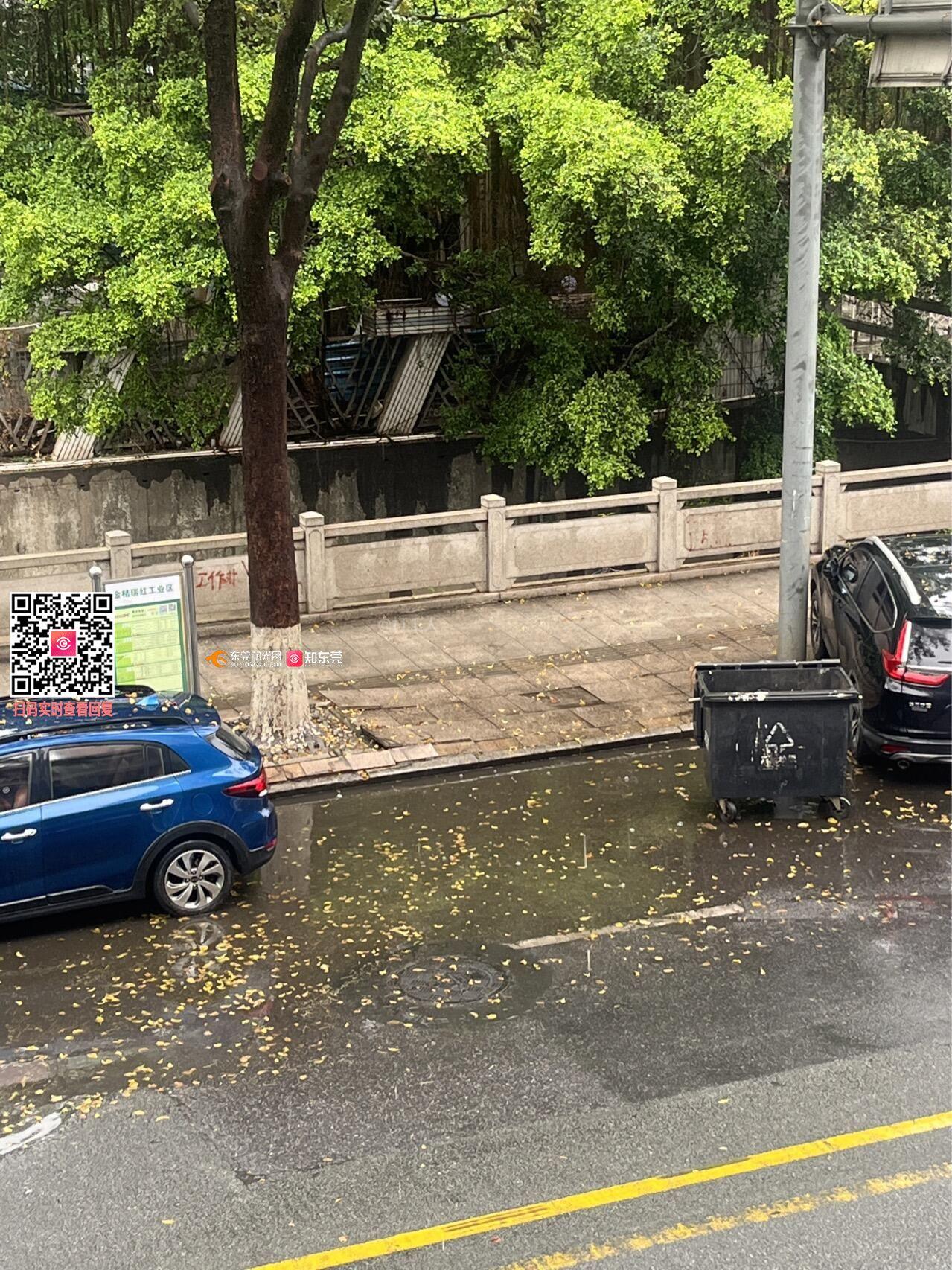 金桔村瑞红工业区横镇西路下水道堵塞,排水口堵塞,水浸街。