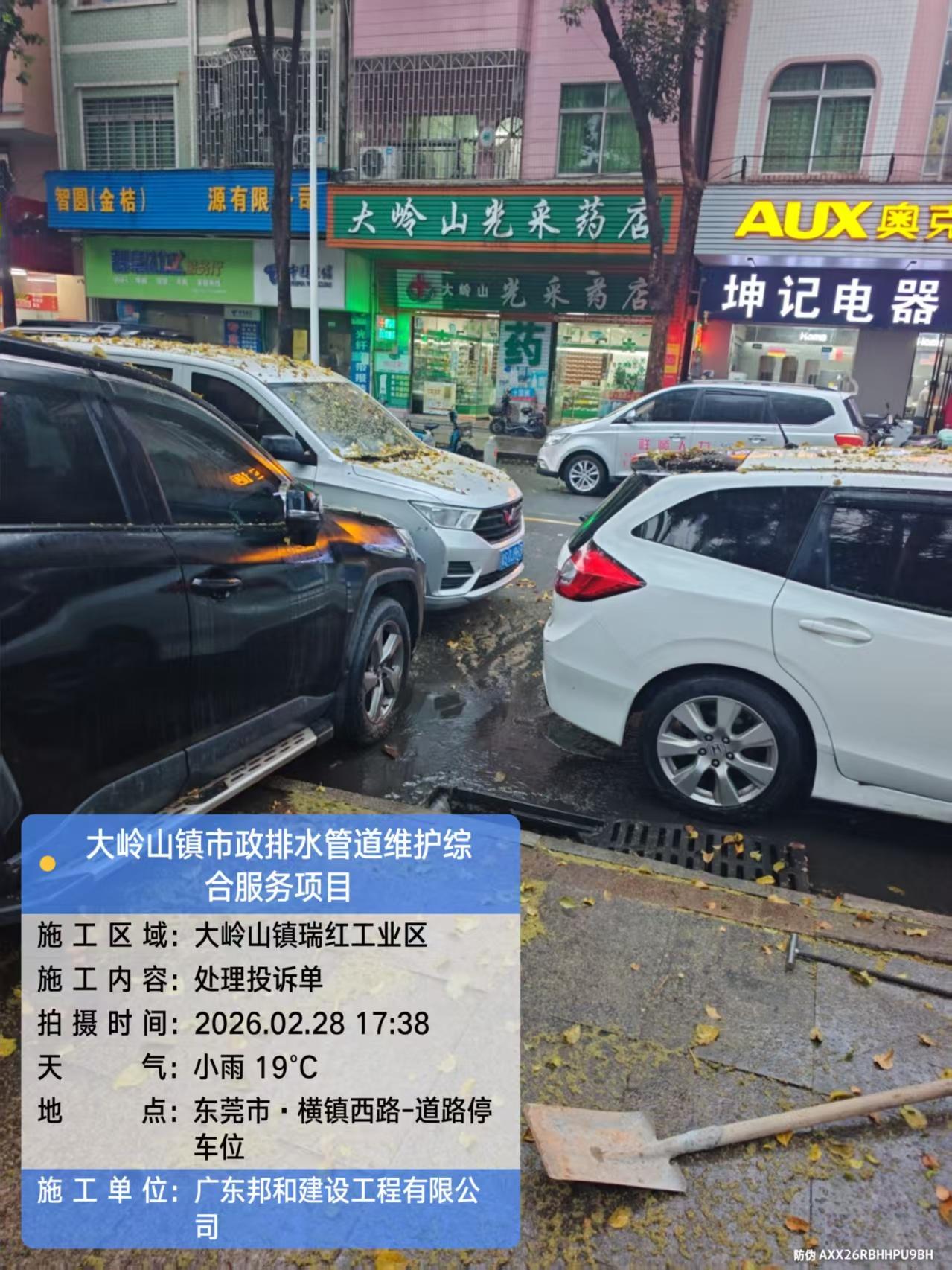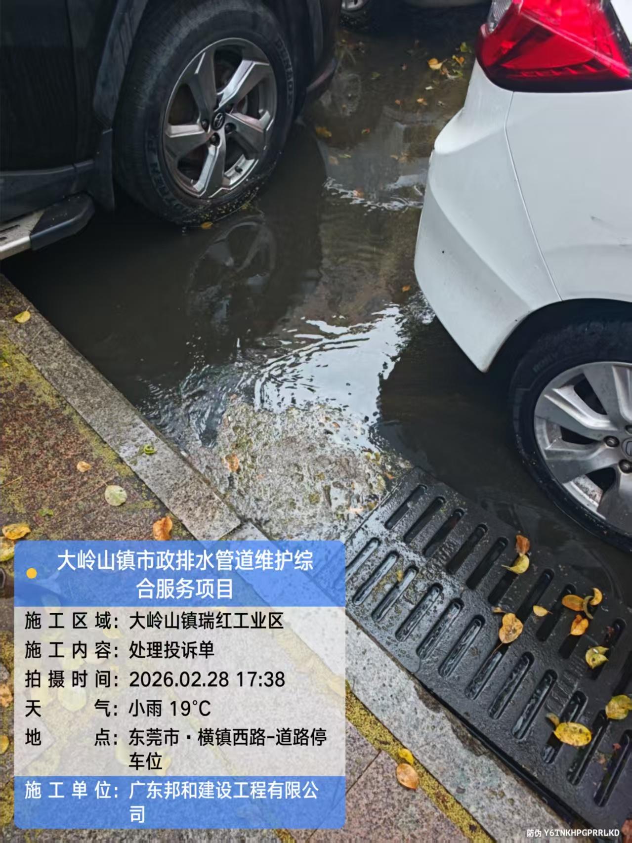 尊敬的市民,您好!您反映的问题已收悉,现回复如下:收到反映的情况后,我们于2026-02-28 17:25电话与您取得联系,根据市民描述位置,水务中心工作人员现场核实由于树叶堵塞排水井口导致积水,水务中心工作人员已经清理树叶、打开排水井加快积水退散,目前积水已经消退。感谢您对我们工作的理解和支持!