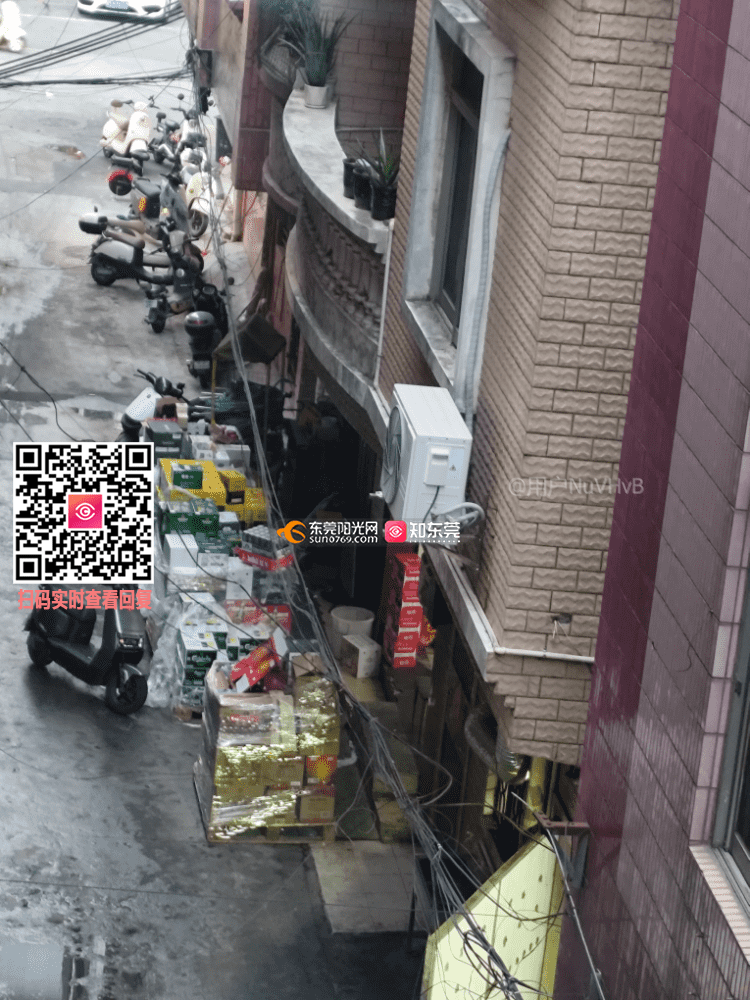 歪马送酒商铺占道经营,影响居民出入,车辆出入