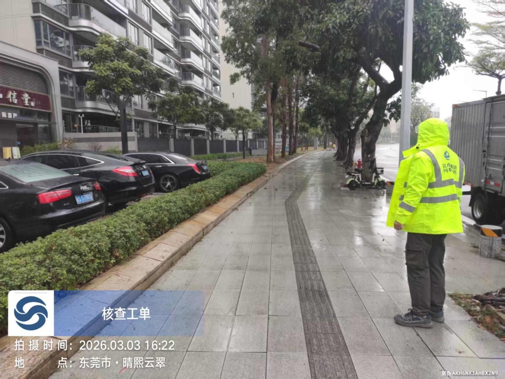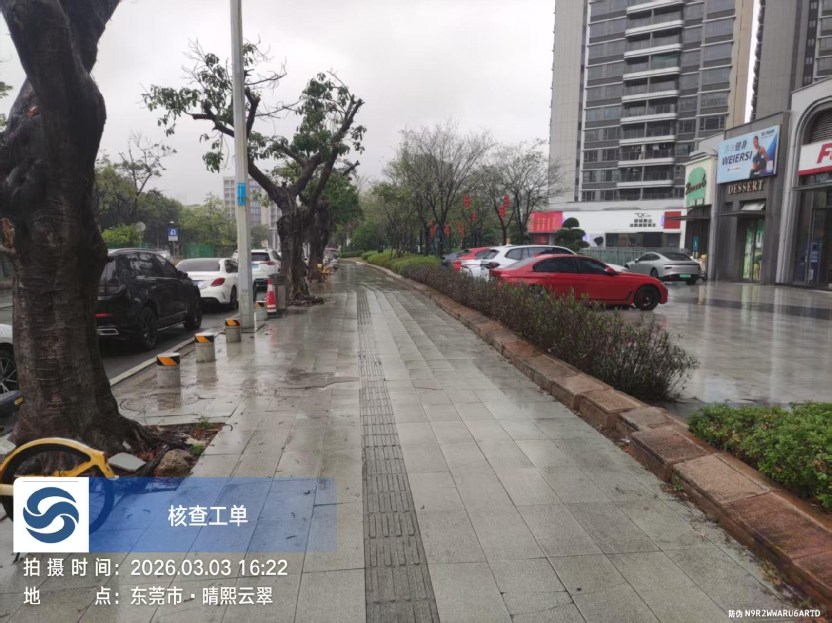 湖景大道62号人行道大量污水涌出,导致路面湿滑行人滑倒