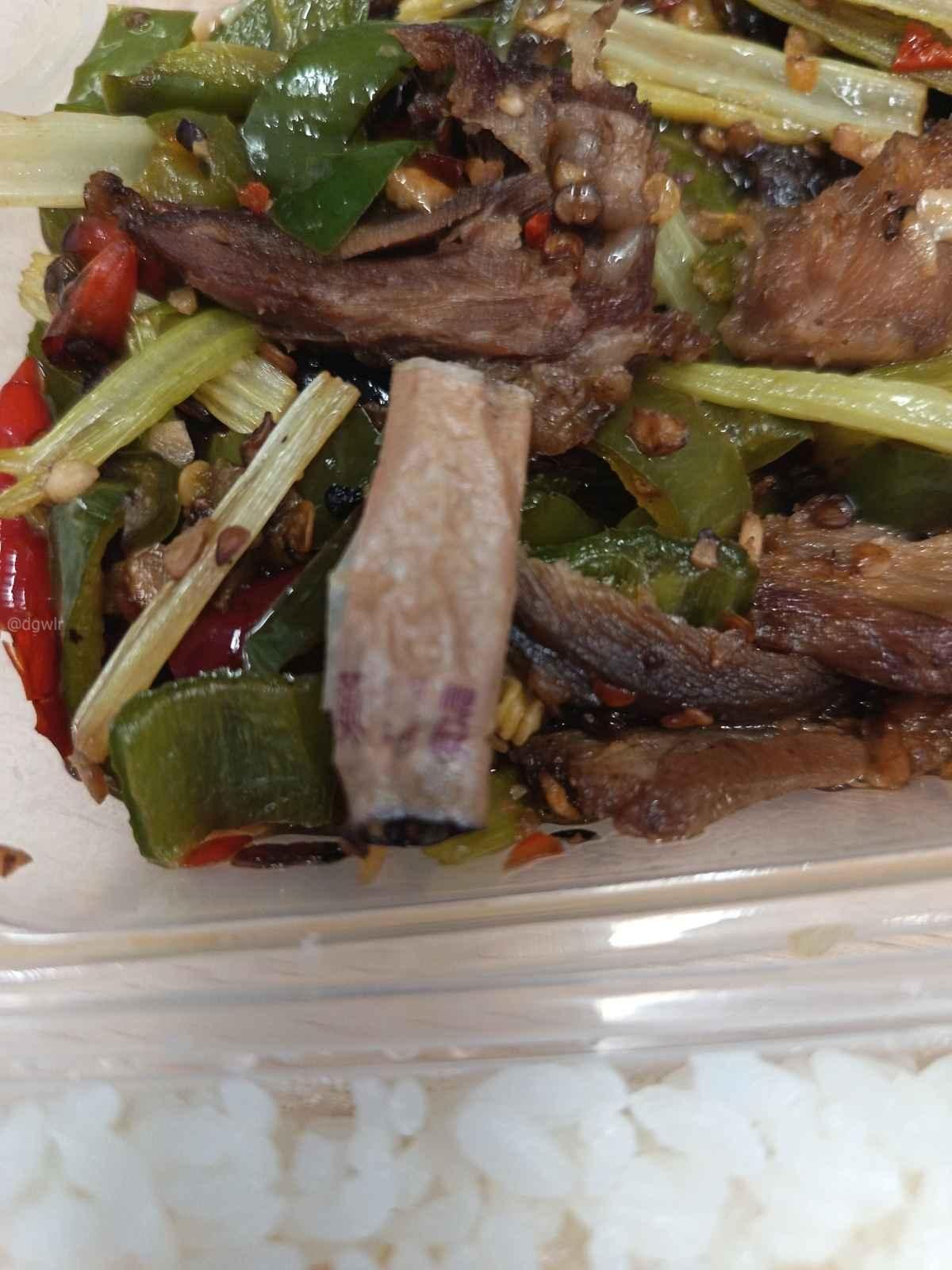 京东外卖平台上点了个外卖,吃出了一个黄鹤楼的烟头,该找谁负责