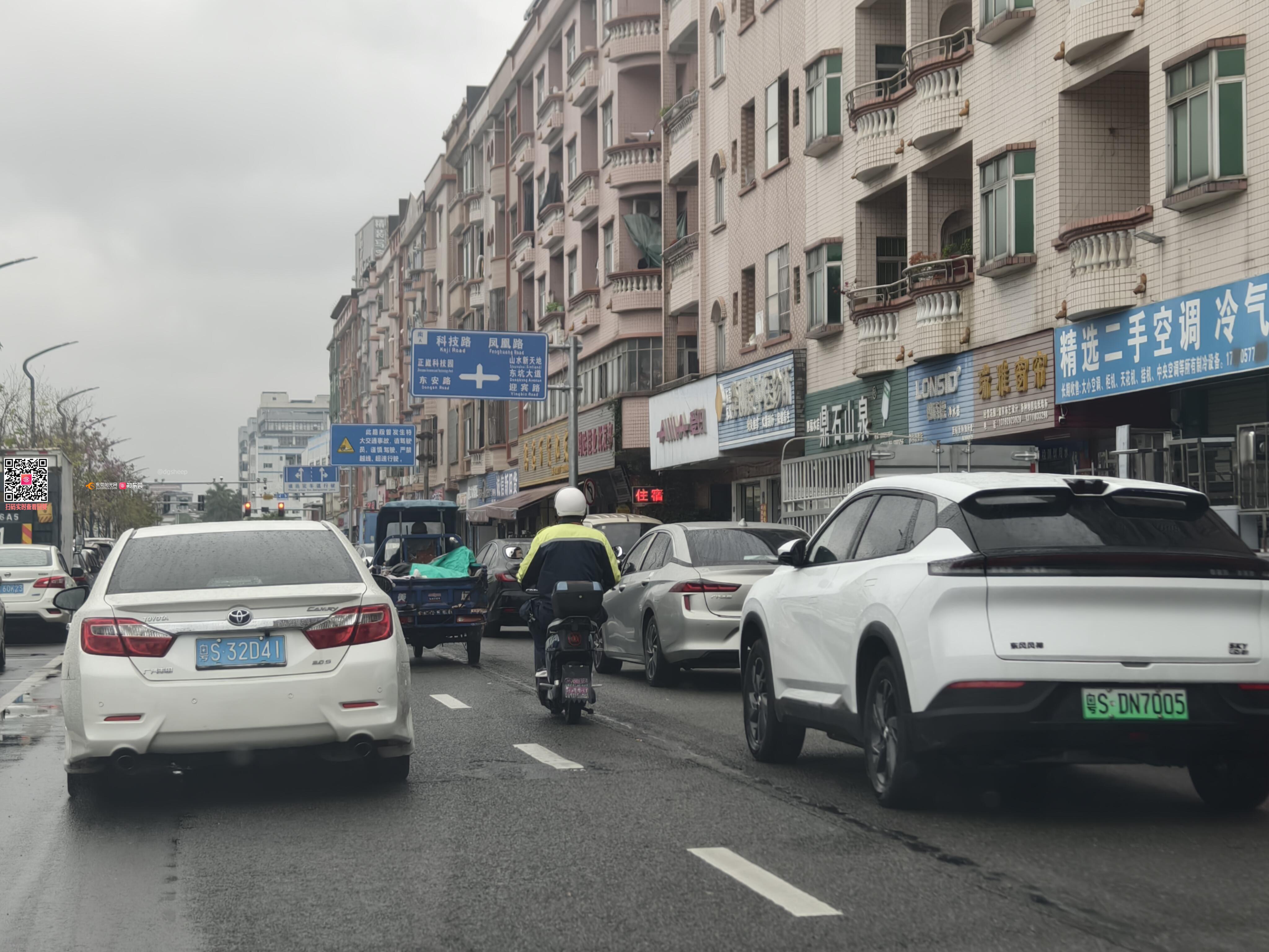 东坑镇沿河西路仅剩不到一条车道可以通行