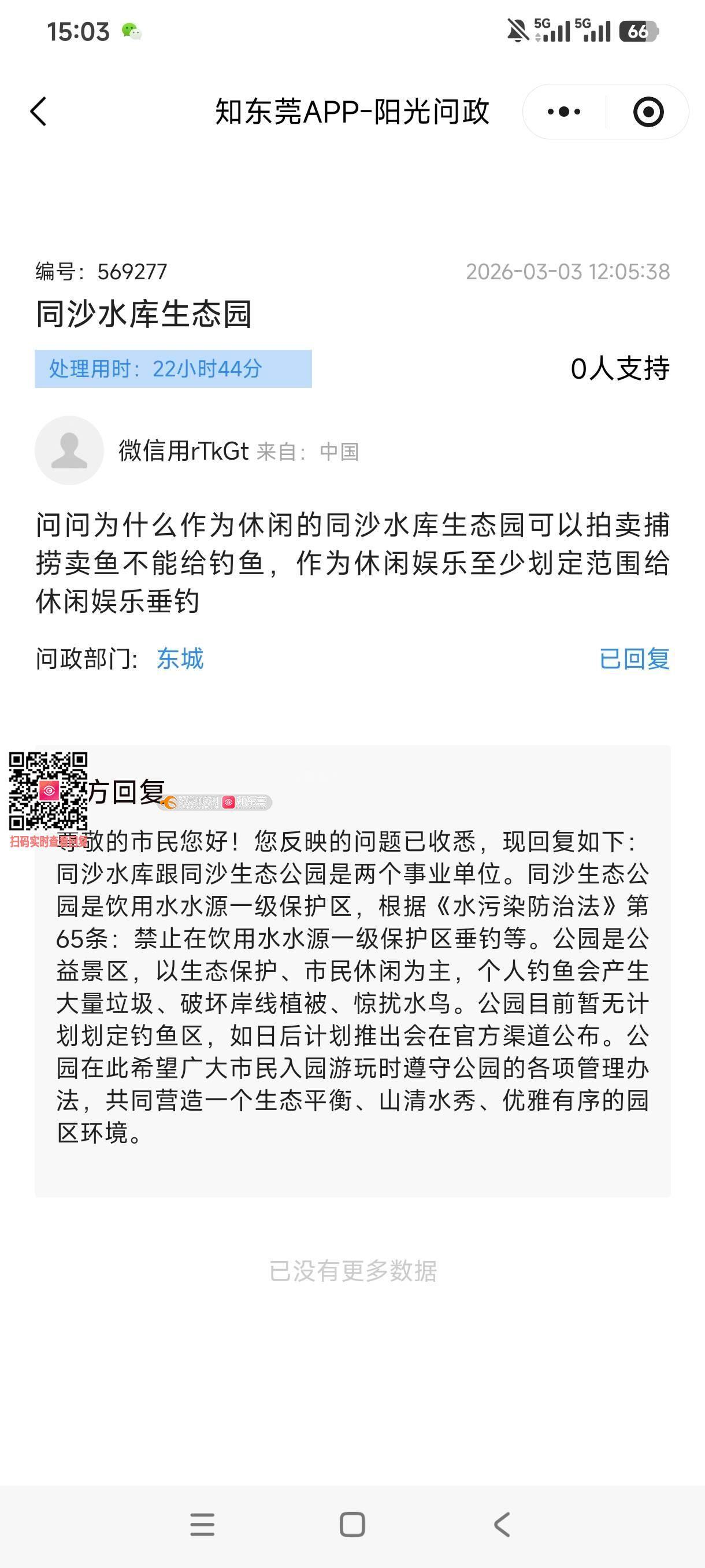 刚看到这个市民的建议同沙回复说同沙一级水源保护区,请问什么时候同沙成为一级水源保护区了?不单这个市民建议,很多市民都提过建议同沙能适当开放垂钓区域,平时经过同沙也看到确实有很多市民周末在同沙有带小孩体验钓鱼,请同沙明确下同沙为一级水源保护区的政策文件给大家普及学习下,如果同沙不是一级水源保护区,是否对各位市民的建议就这样随便回复应付太过于敷衍了事?