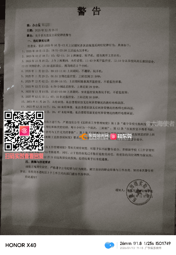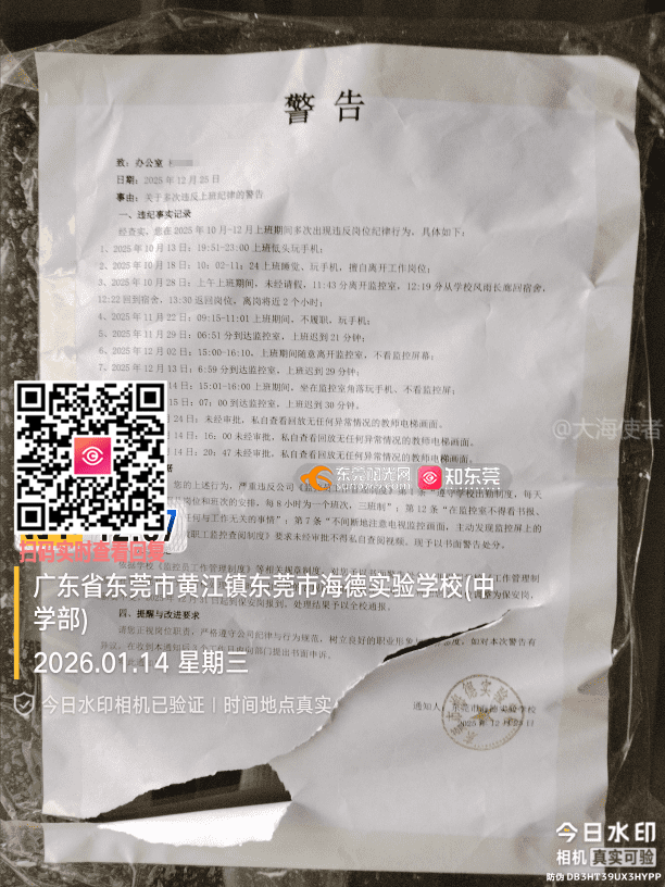 东莞市海德实验学校违规公开教职工处分信息,侵犯隐私权且污染育人环境
