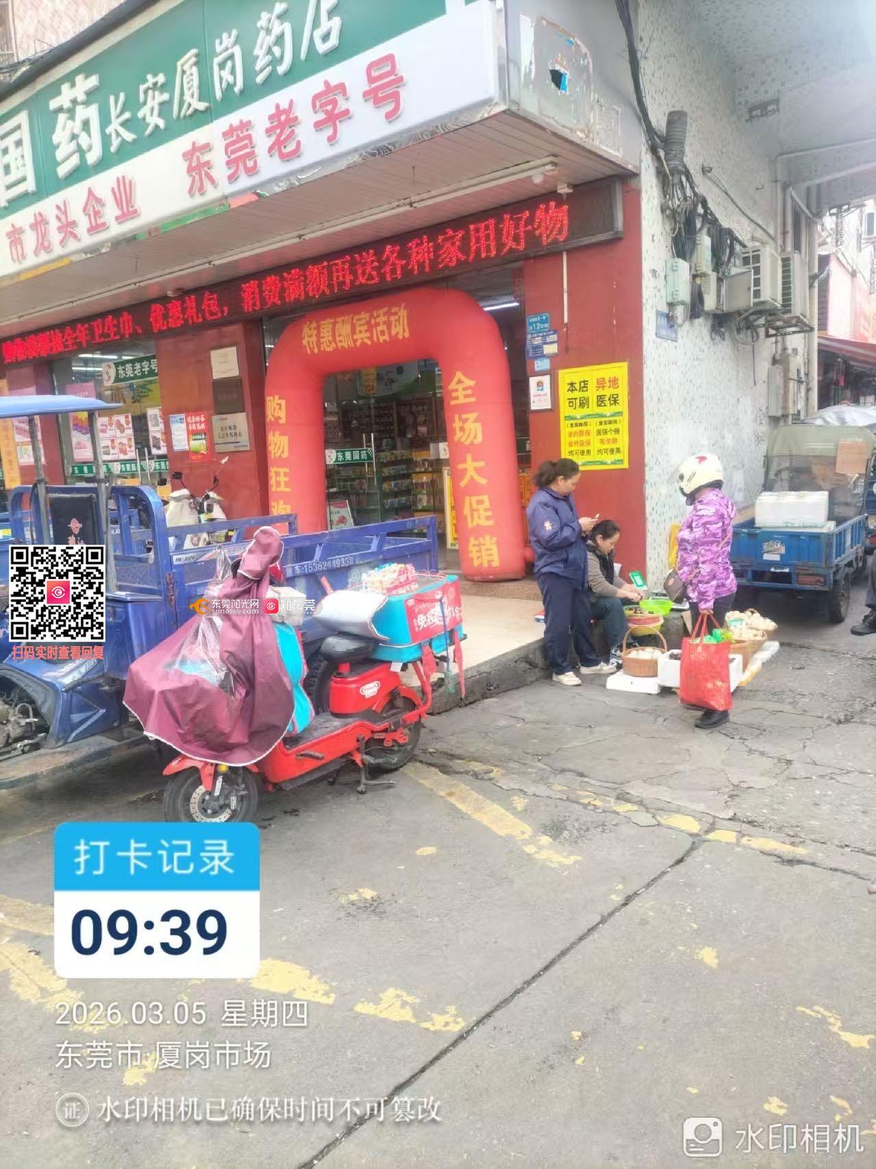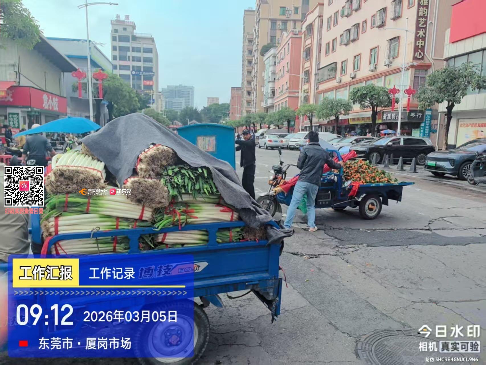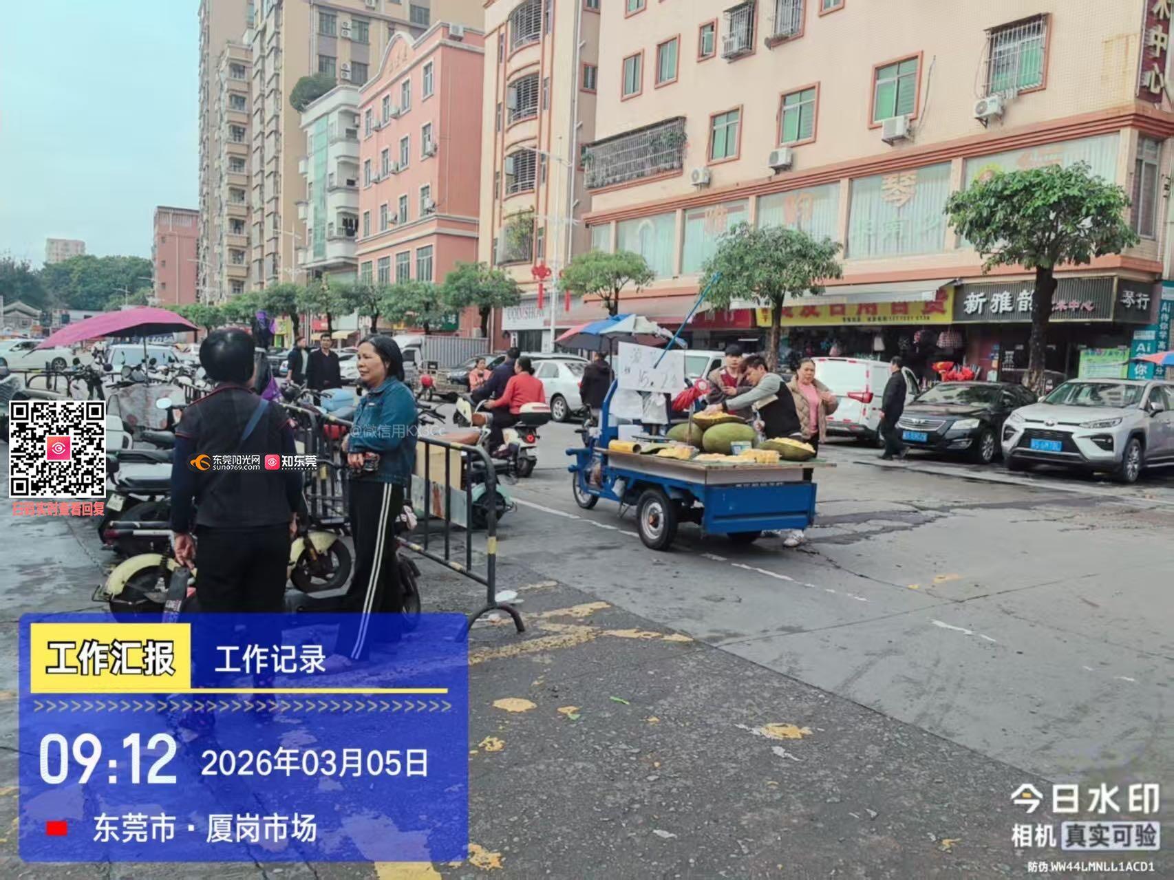 我要投诉长安镇厦岗市场大门口有好多三轮车占道经营、乱摆乱卖问题。长期以来,多处路段有三轮车随意占道摆摊、停放,严重占用机动车道、人行道及消防通道,造成交通堵塞、出行不便、安全隐患突出,影响周边居民正常通行,也破坏市容环境。 恳请相关部门尽快现场核查、依法整治、加强巡查管控,还市民安全、畅通的出行环境。