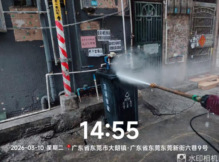大朗新市街6巷2号对面,垃圾桶设置问题, 去年年底开始联系12345,家里门口设置了一个垃圾桶夏天味道很大,楼上窗户都闻到,晚上很多老鼠跑进巷子,希望将垃圾桶设置其他适合地方,或者撤走垃圾桶,村委会回复三次,过度期间将垃圾桶撤,早上撤走,下午就有个垃圾桶,根本没有撤走没有过渡期,三次都在敷衍,没有做到,追问谁放的垃圾桶,他们回复不知道,我猜是环卫工人继续放的垃圾桶,他们内部没有沟通好,请问这种要怎么解决,气味真的很大,影响生活,忘尽快回复,感谢