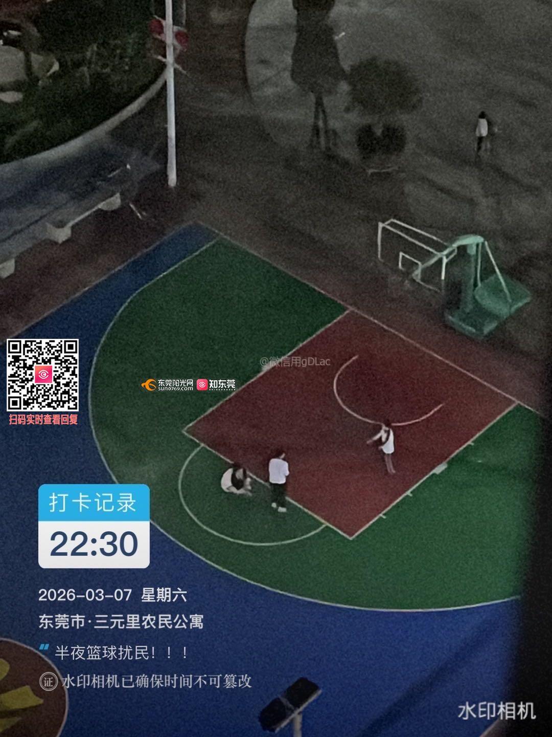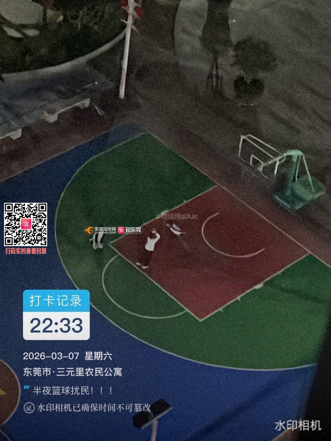 半夜该休息的时间,个别市民打篮球的噪音影响休息!希望相关部门重视!希望能采取相应措施!
