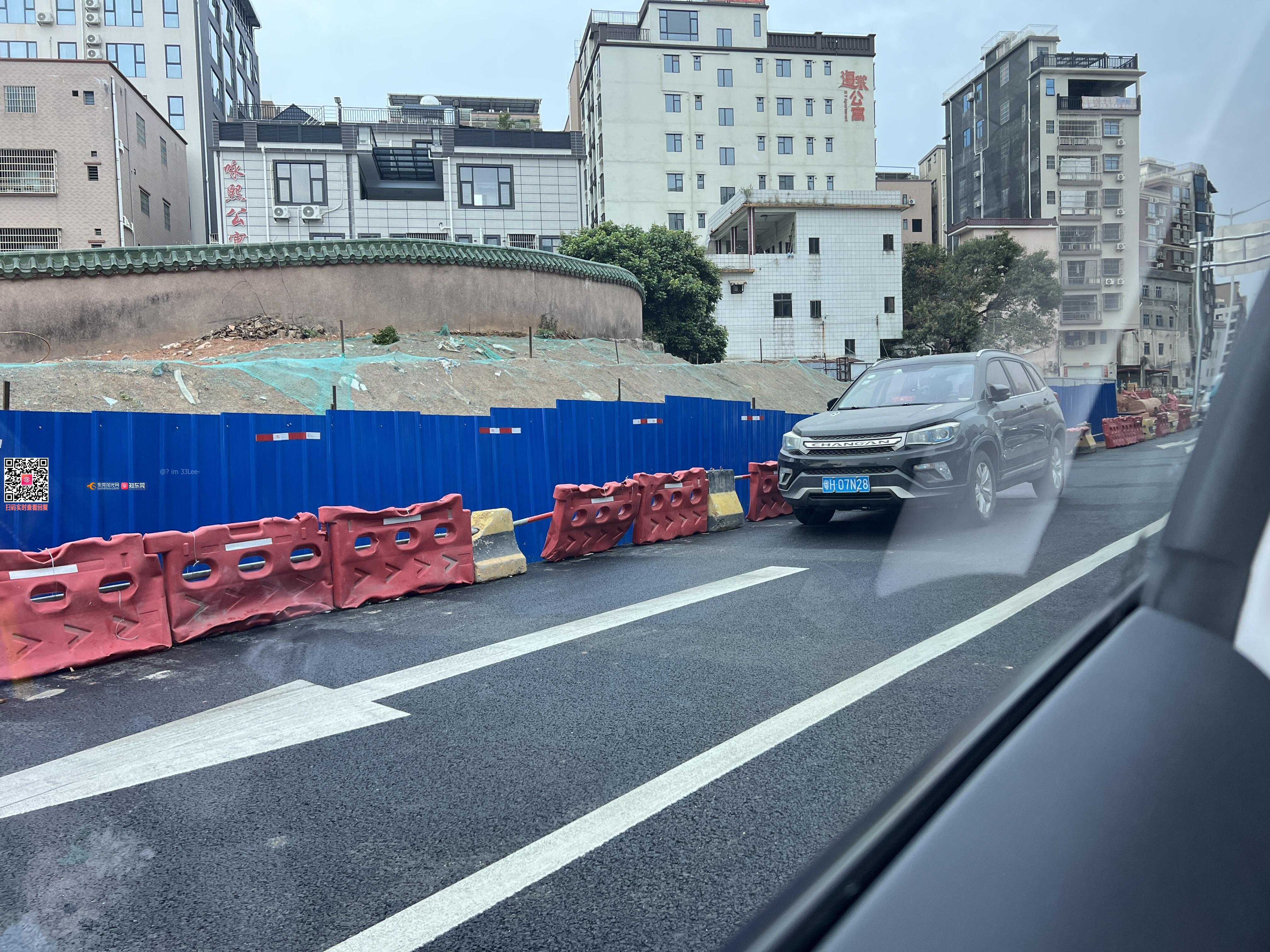 大岭山建设路车辆乱停放,占用车道