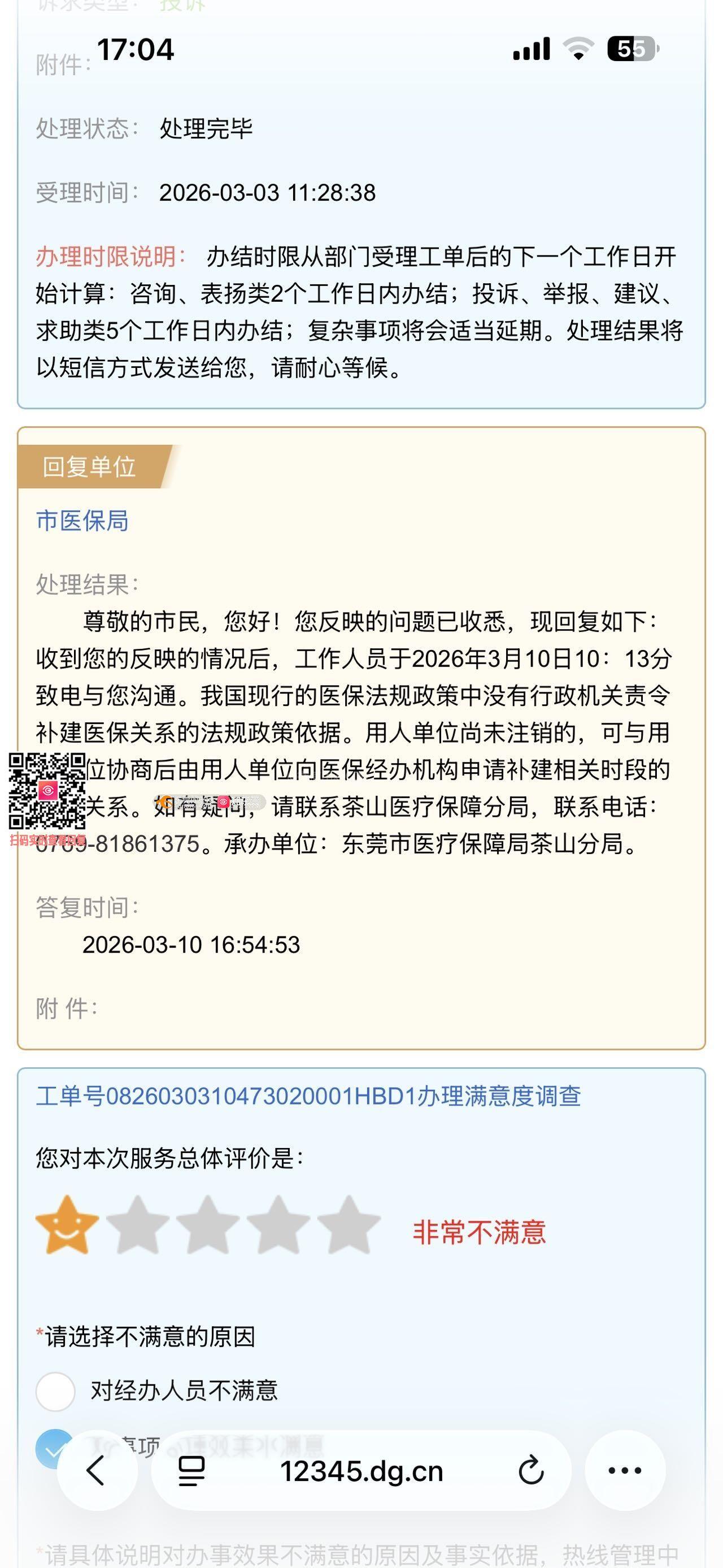 我对处理结果非常不满意。 东莞茶山镇社保局告知我,单位同意补缴社保,但要我个人承担一万多元滞纳金。根据法律,滞纳金应由单位全额承担,不应由我支付。社保局不依法督促单位,反而转达这种不合理要求,明显偏袒川拓电子厂。 茶山劳动监察工作人员电话态度恶劣,8分钟通话我几乎插不上嘴,也偏向企业。 我投诉的公积金问题至今无人处理。要求重新依法处理。