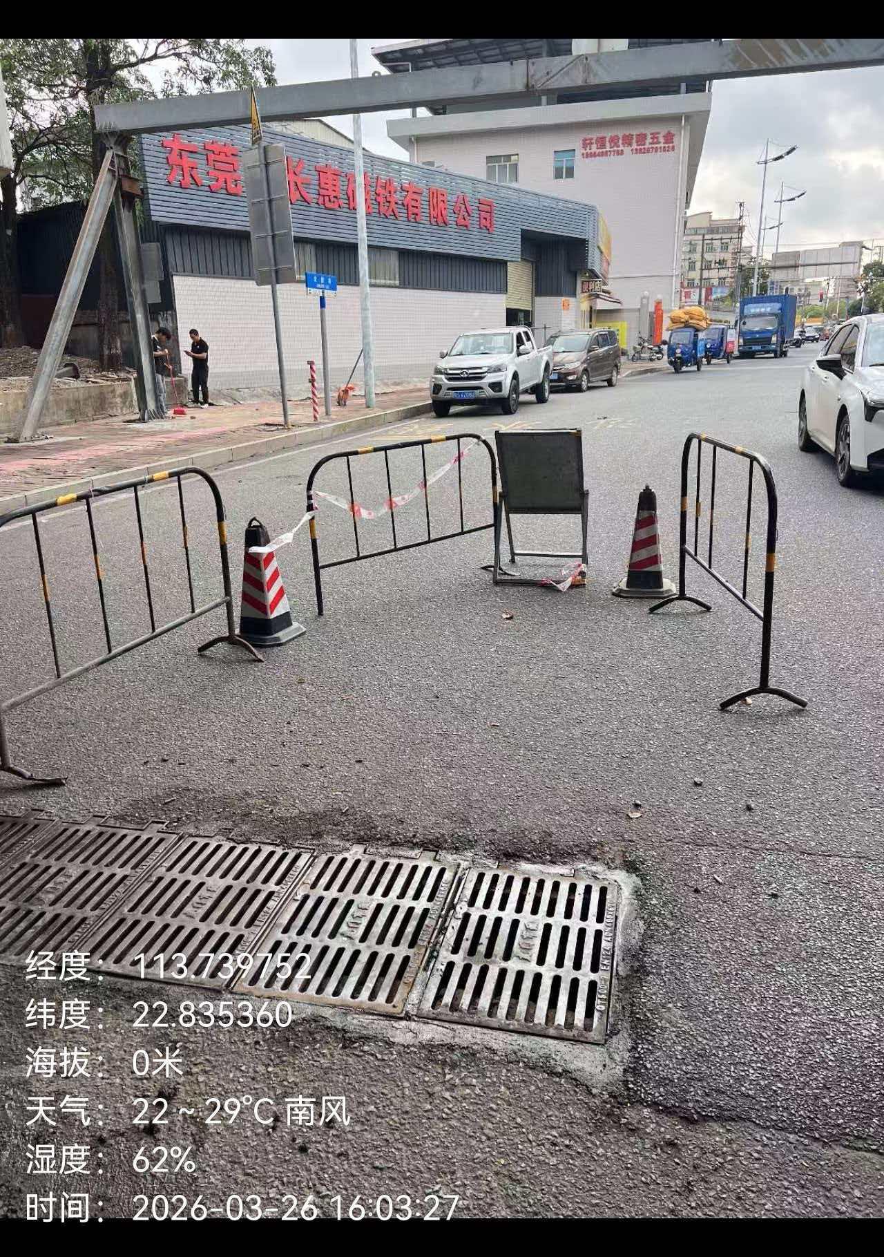 尊敬的市民,您好!您反馈的问题已收悉,我中心于2026年3月25日电话联系您了解情况,现回复如下: 收到市民反映后,我中心马上安排人员到现场排查并围蔽,已于3月26日完成井盖修复,如有疑问,请联系东莞市虎门镇水务工程运营中心,联系电话85551113。感谢您对我们工作的监督与支持。