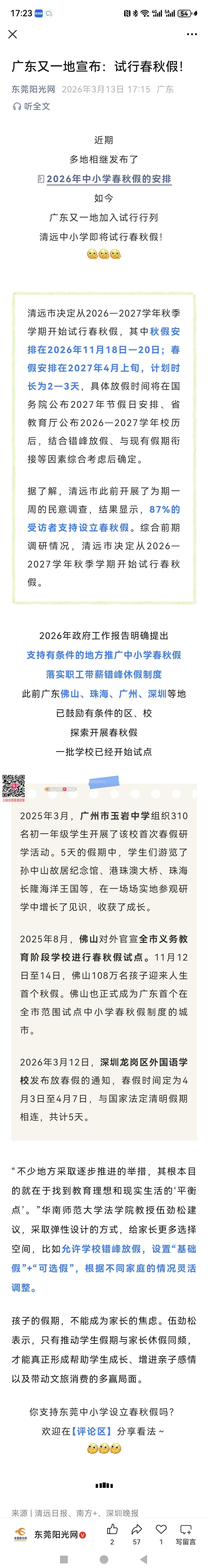 建议东莞学生有春秋假,现在广州深圳佛山还有清远都有了,东莞是不是也有全市统一春秋假呢?单纯建议