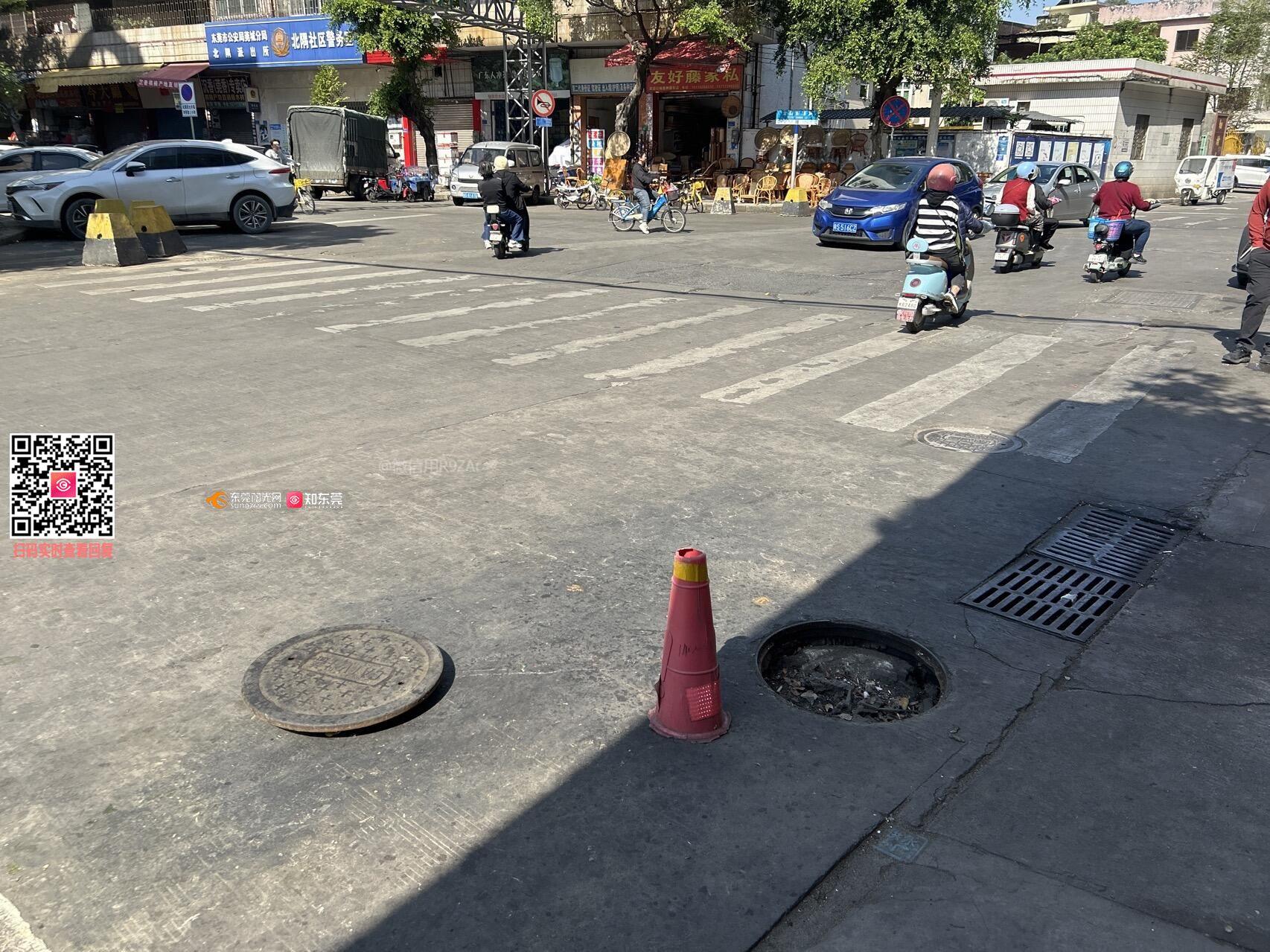 莞城区珊瑚路与光明路交界路口莞进酒业旁有个井盖天天拌倒人和车有好长一段时间一直没人管,希望处理更换